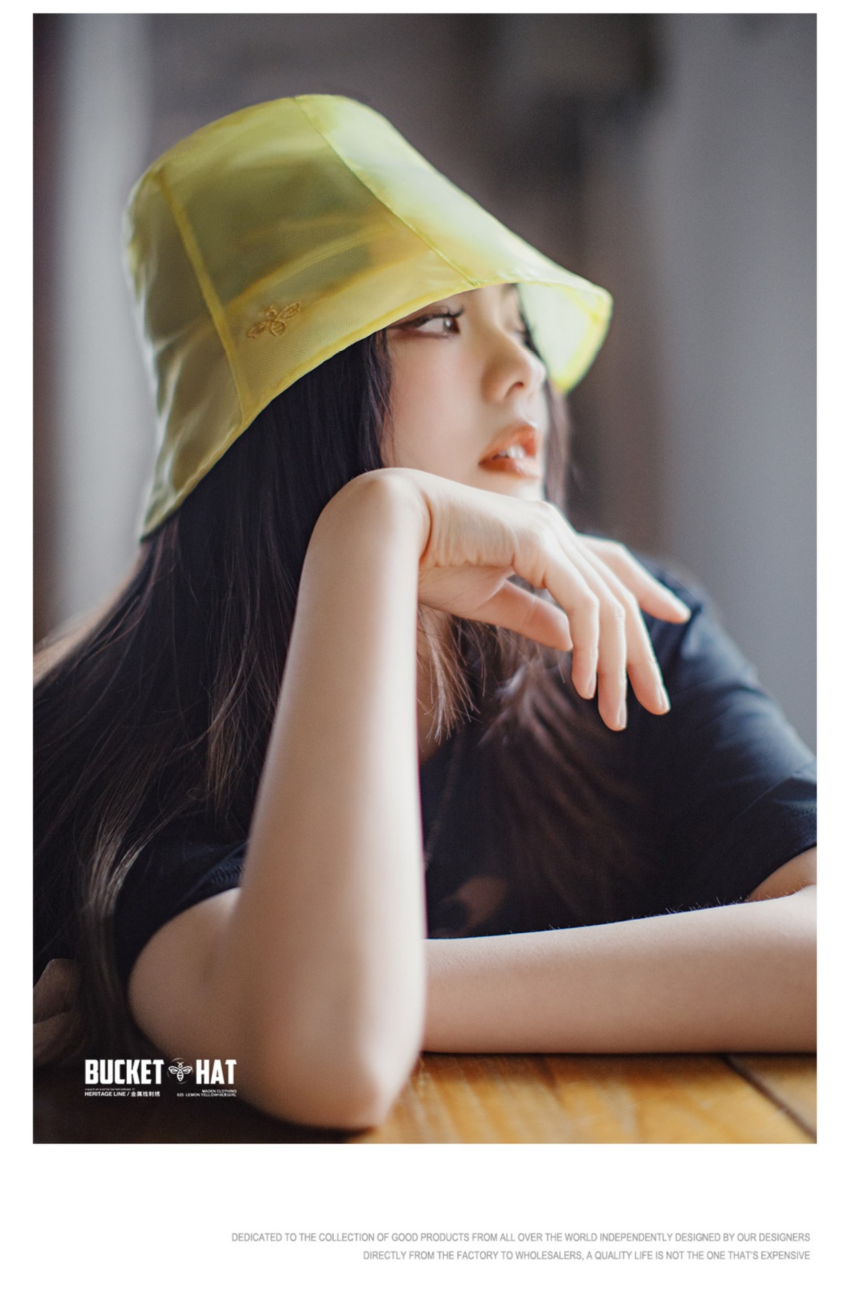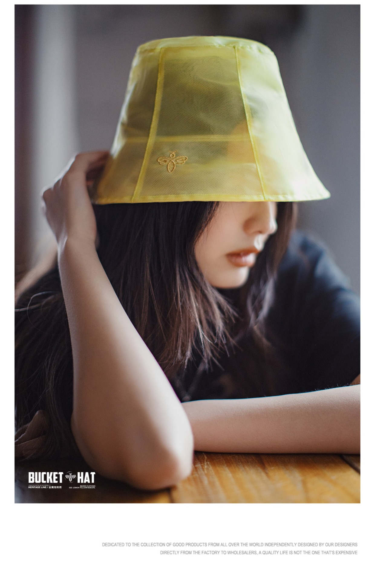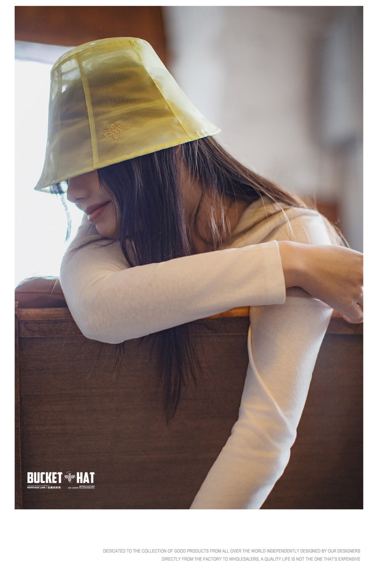 Summer Egg Yolk Yellow Foldable Fisherman's Hat 2025, Dense Mesh, Breathable, Portable Sun Hat for Women