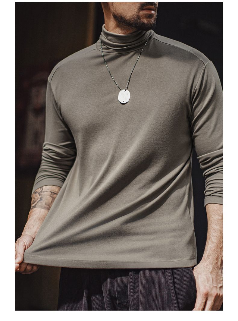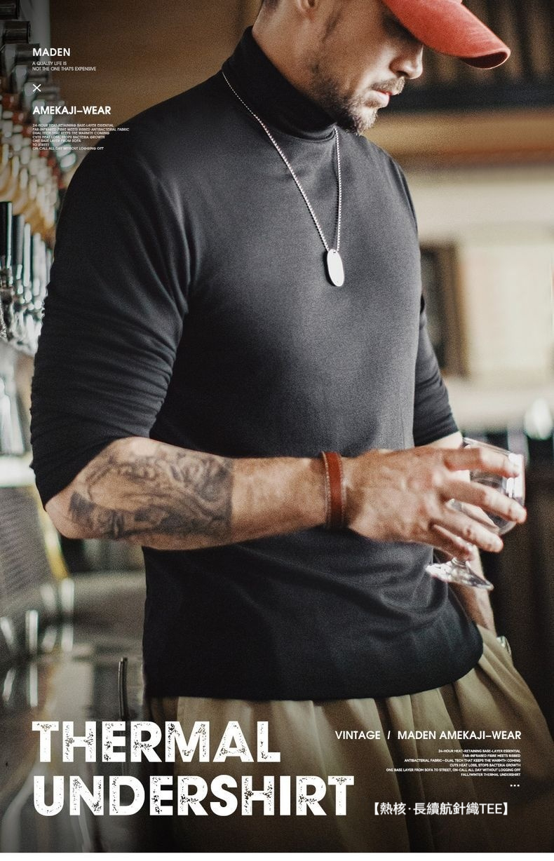 休閒黑色打底衫抗菌半高領老錢風保暖內衣長袖T恤男秋冬