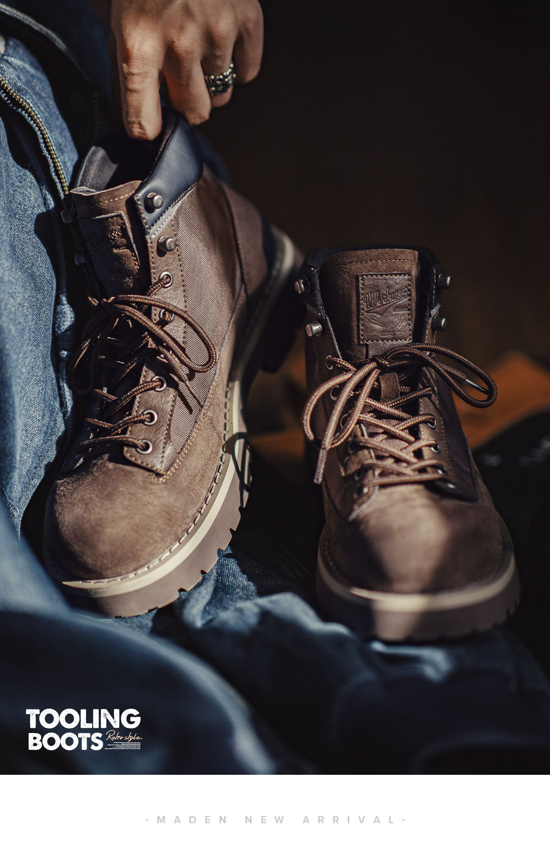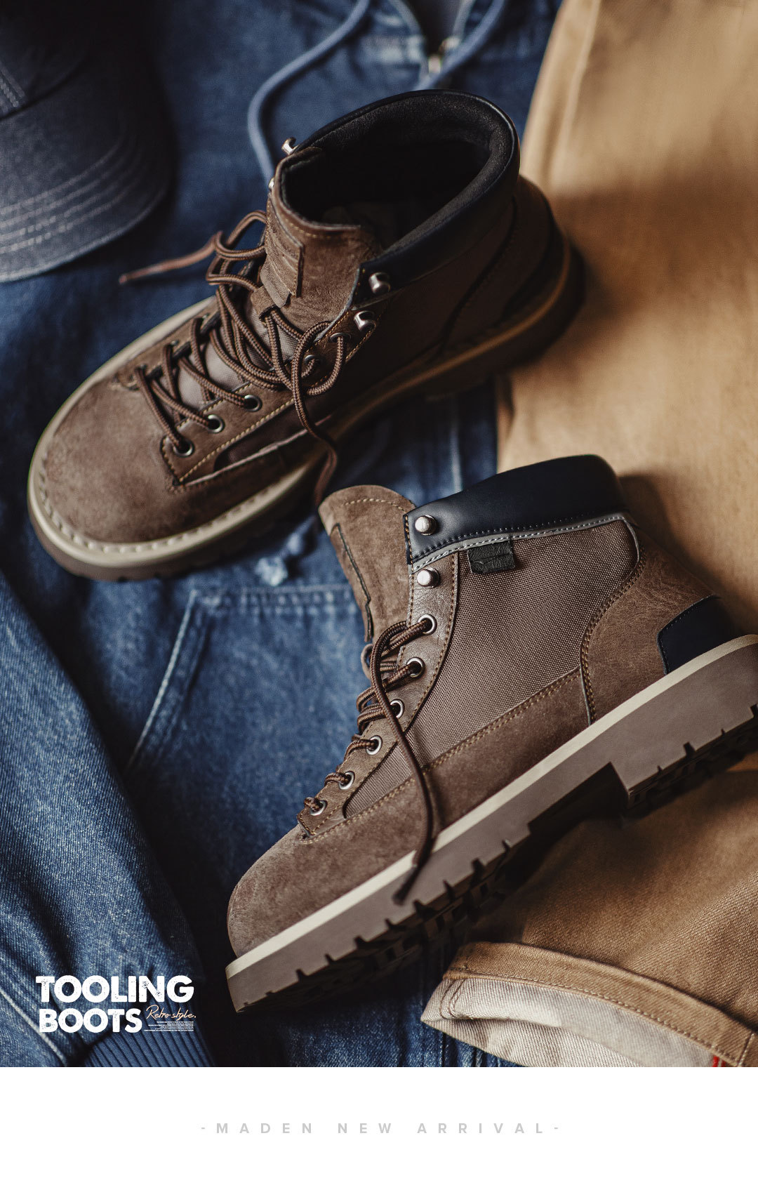 哨兵工裝靴秋冬季男士休閒鞋美式復古中幫真皮登山厚底馬丁靴