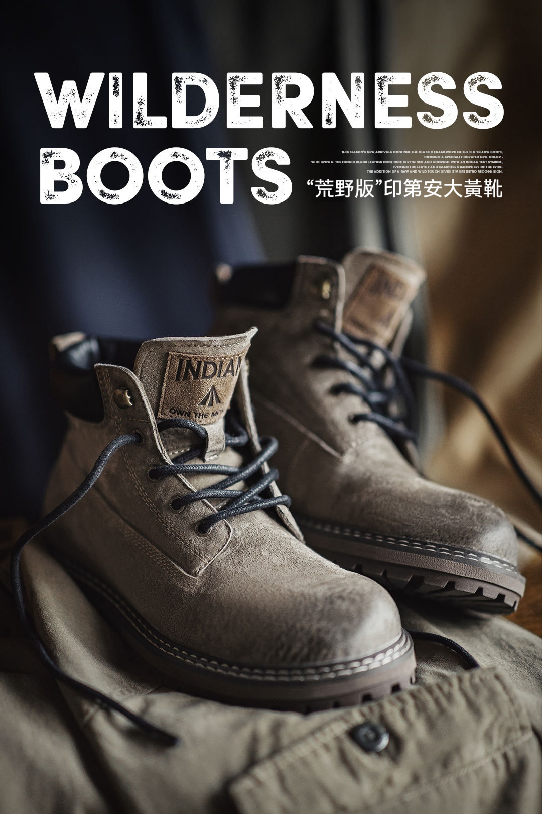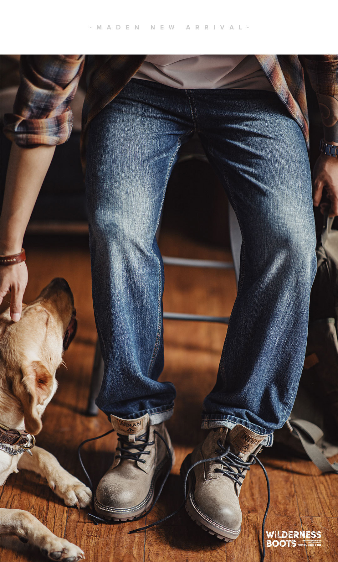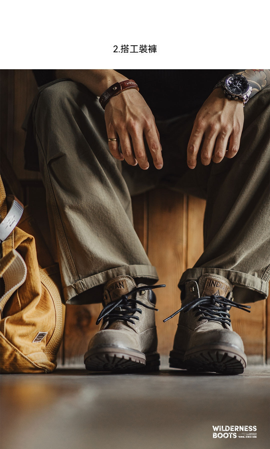 工裝靴男鞋秋冬新款美式復古真皮高級感棕色中幫休閒百搭靴子