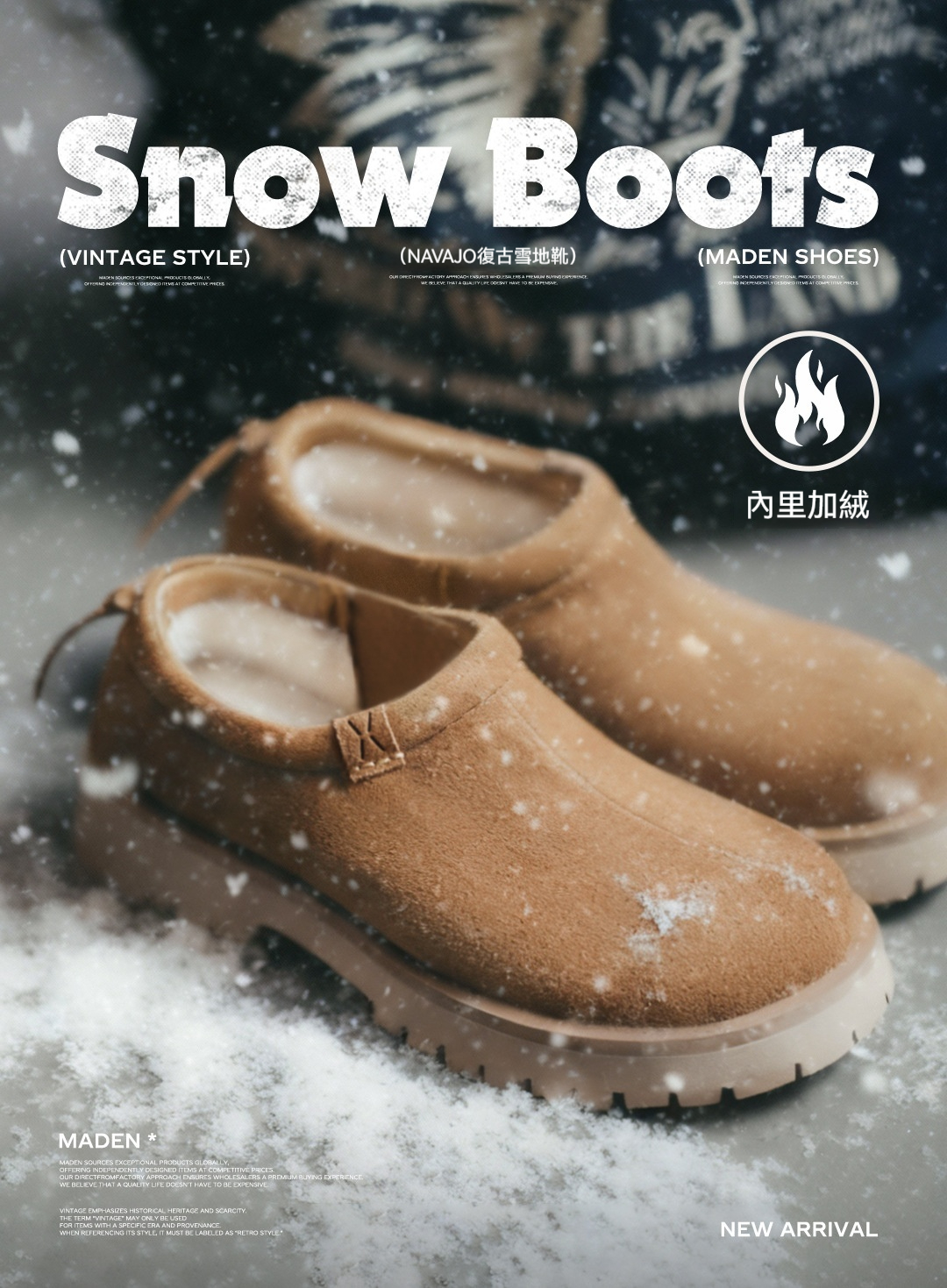 復古雪地靴男款2025冬季新款加絨保暖厚底棉鞋一脚蹬休閒鞋子