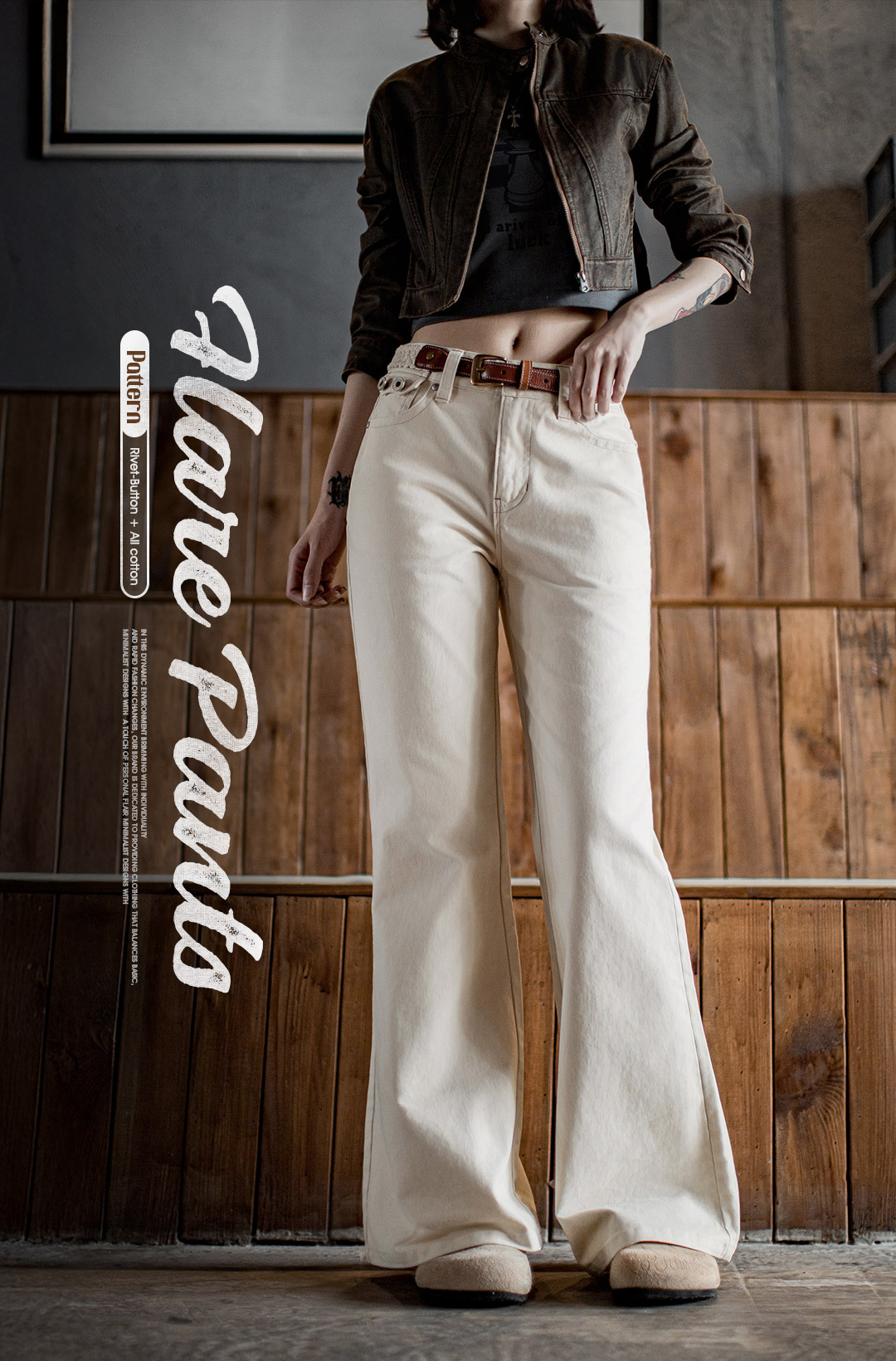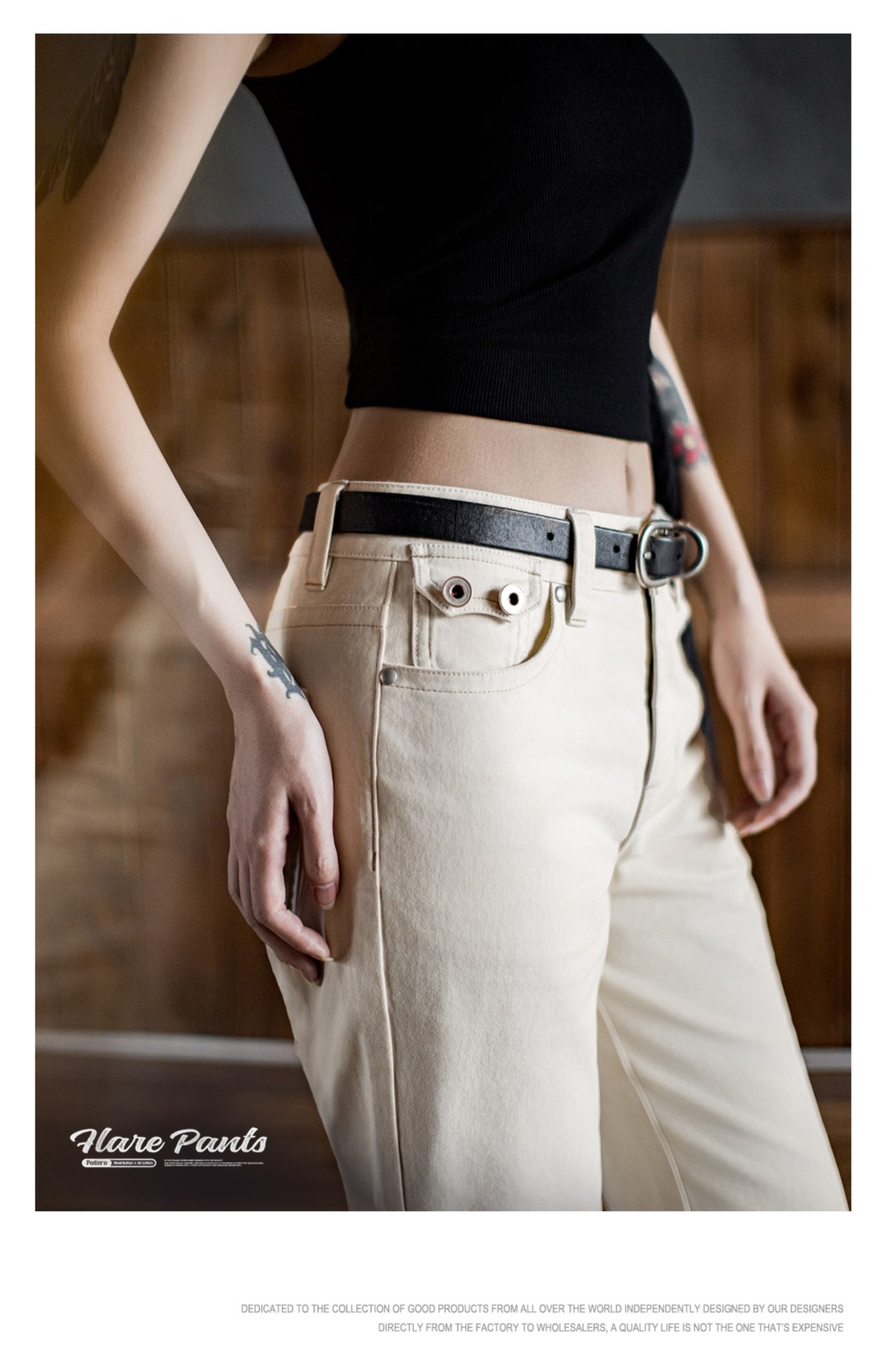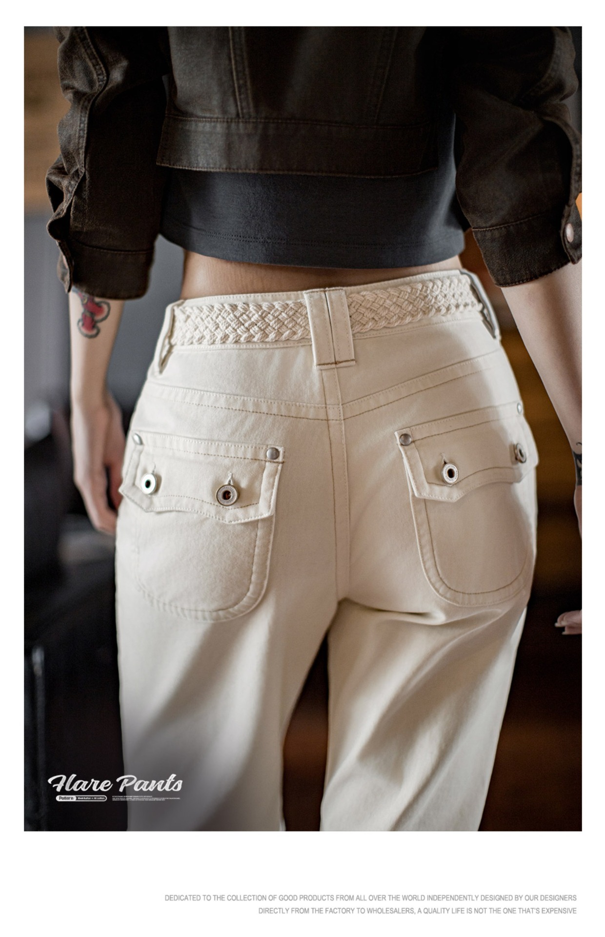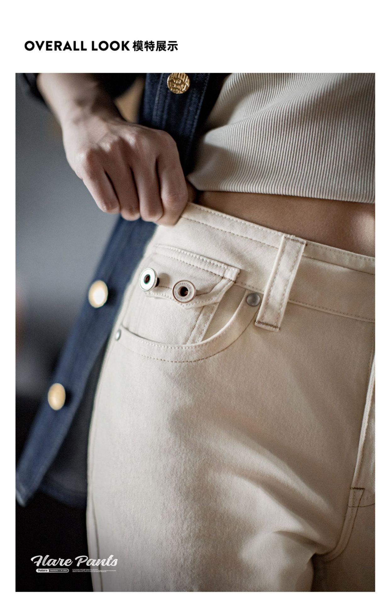米白色直筒休閒褲顯瘦不貼腿純棉微喇叭馬蹄褲小個子女士秋季