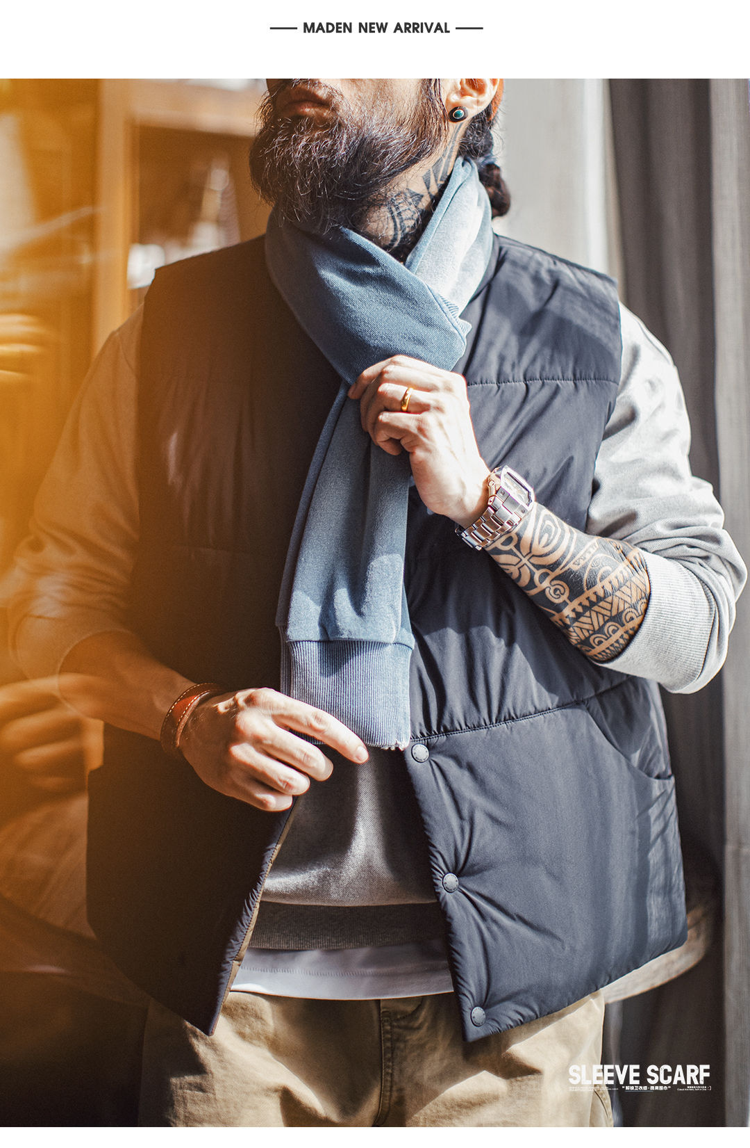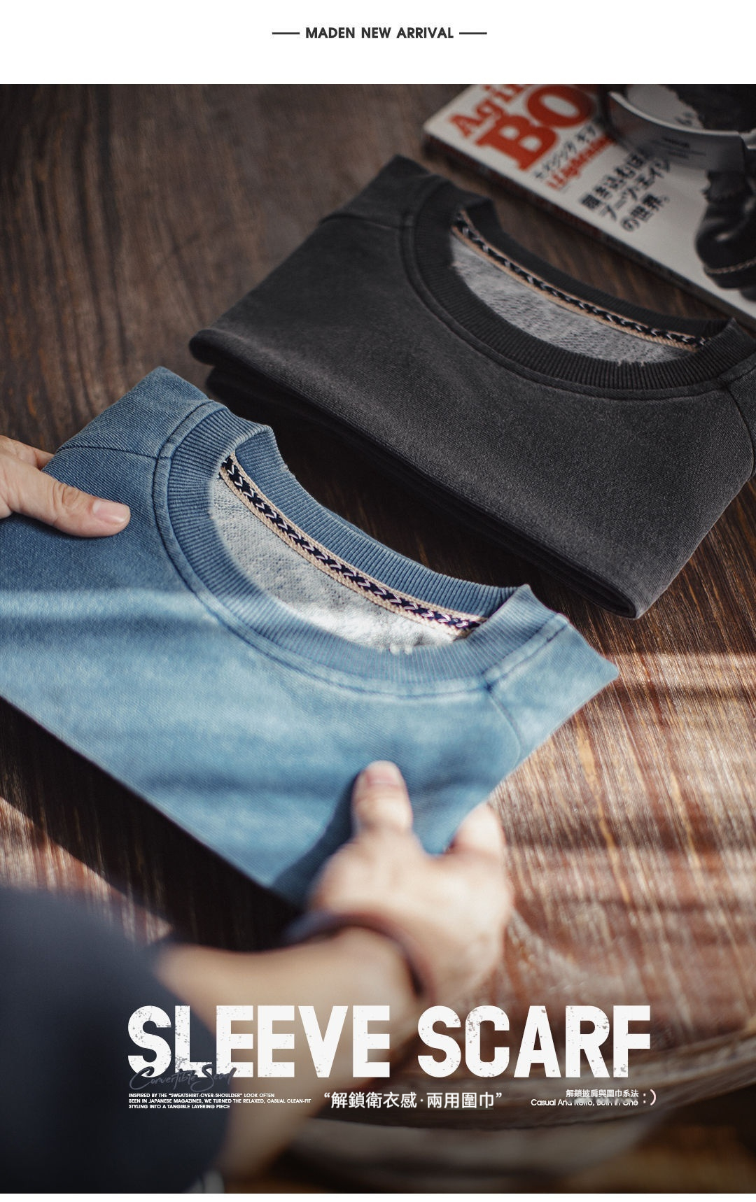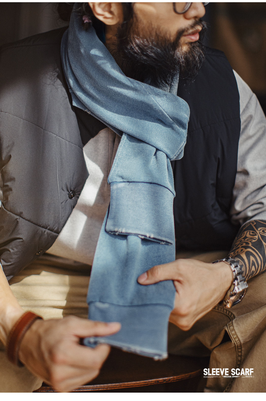 美式仿衛衣圍巾披肩兩用日系復古藍色保暖圍脖搭肩男秋冬