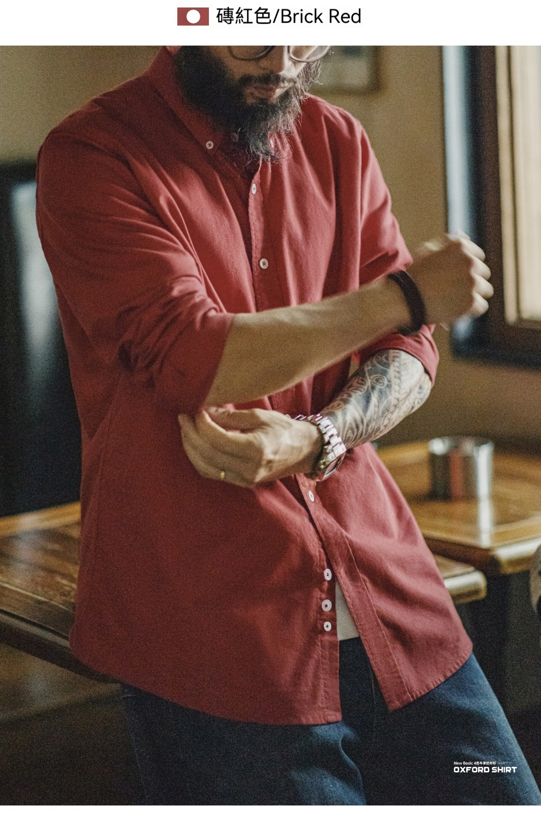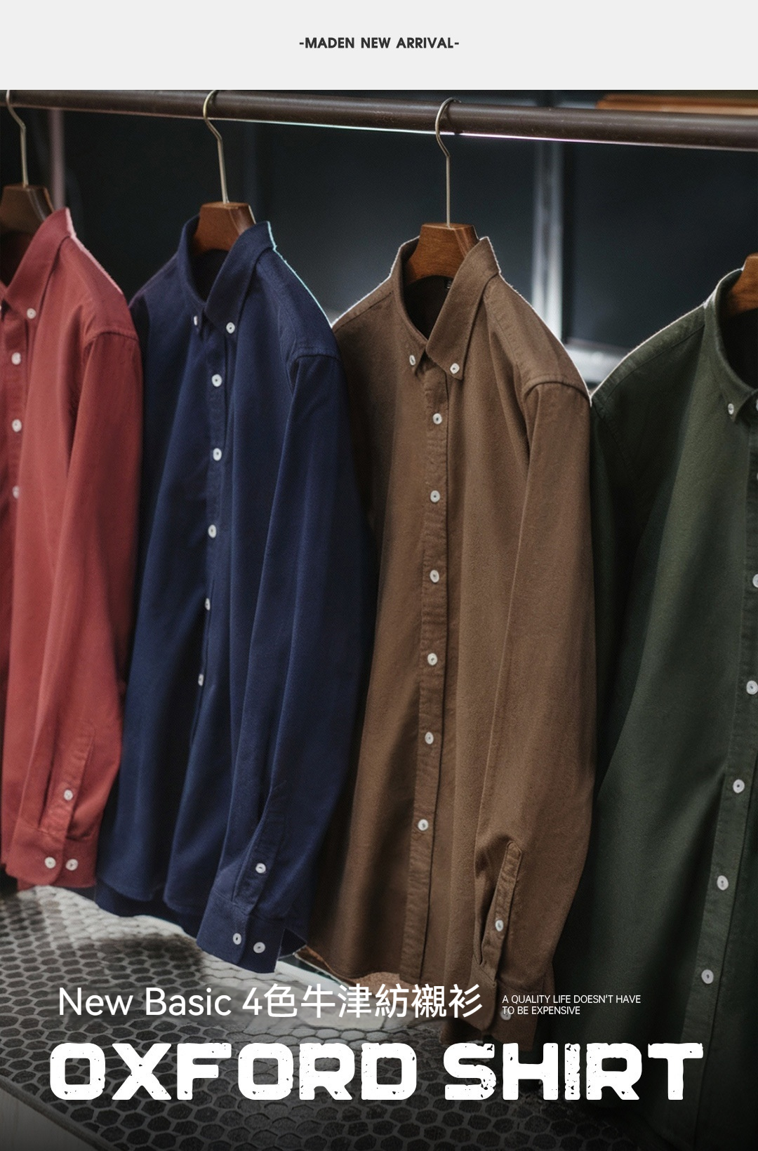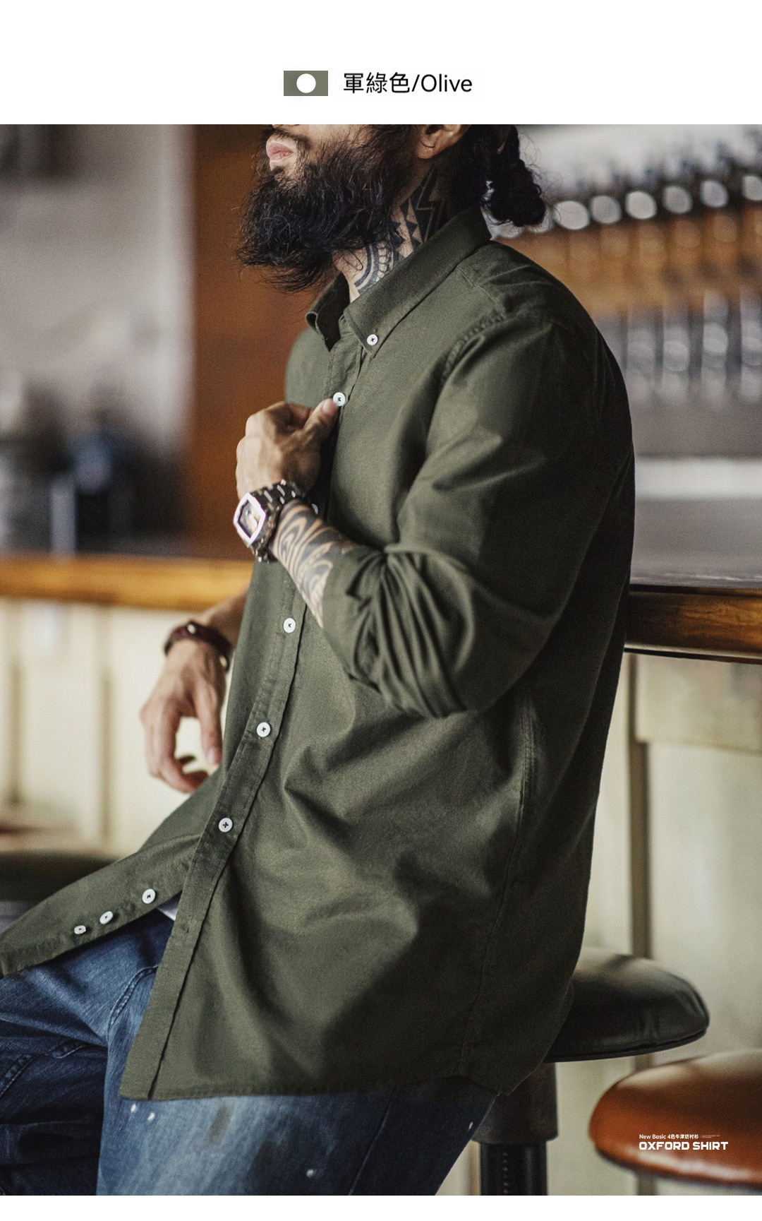 美式休閒純色牛津紡襯衫長袖外套純棉牛津布薄款襯衣男秋