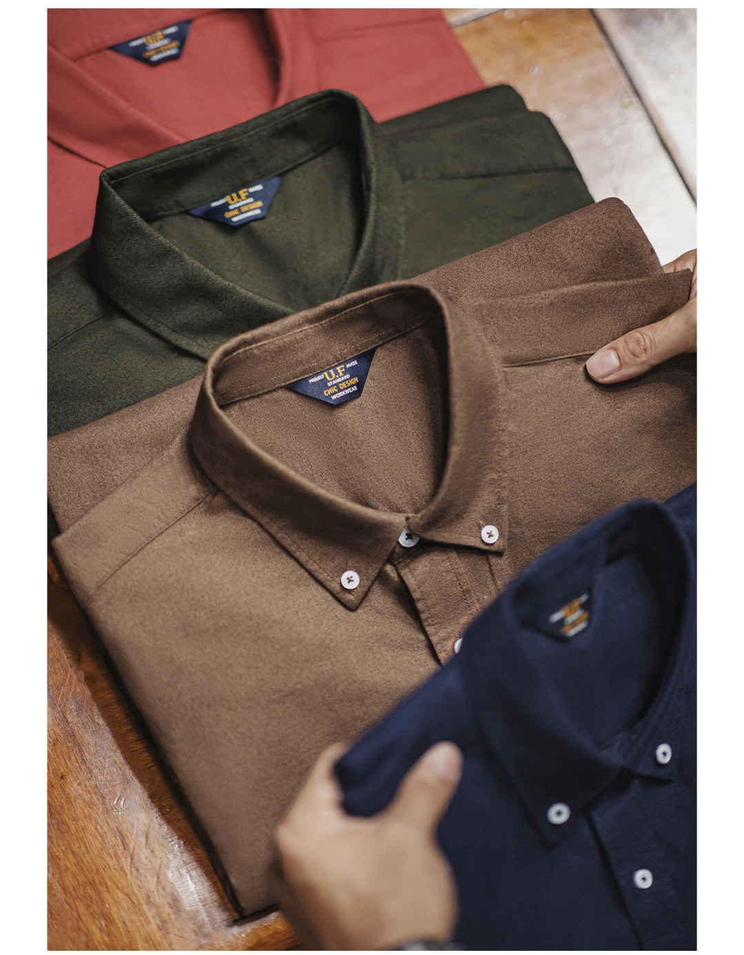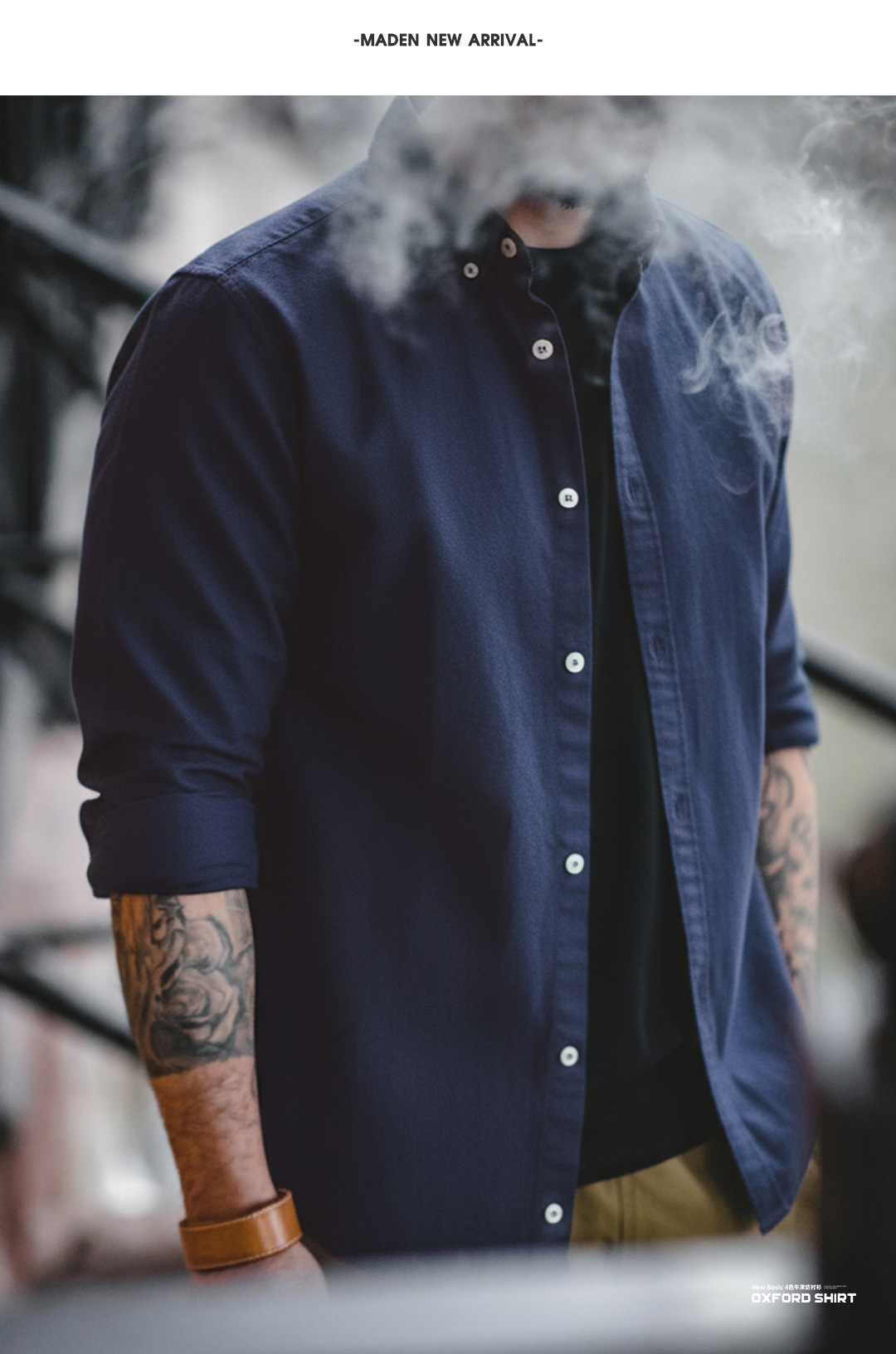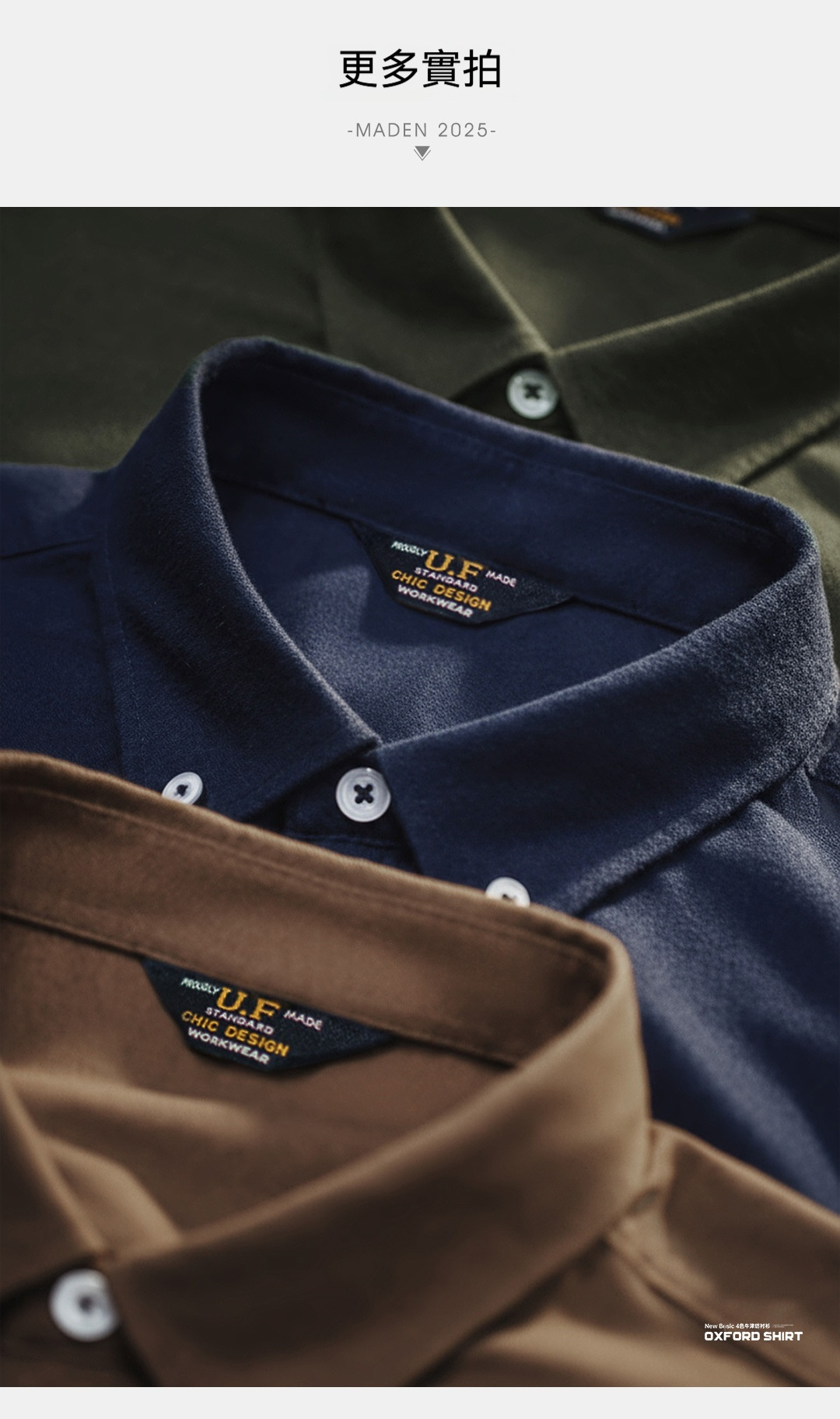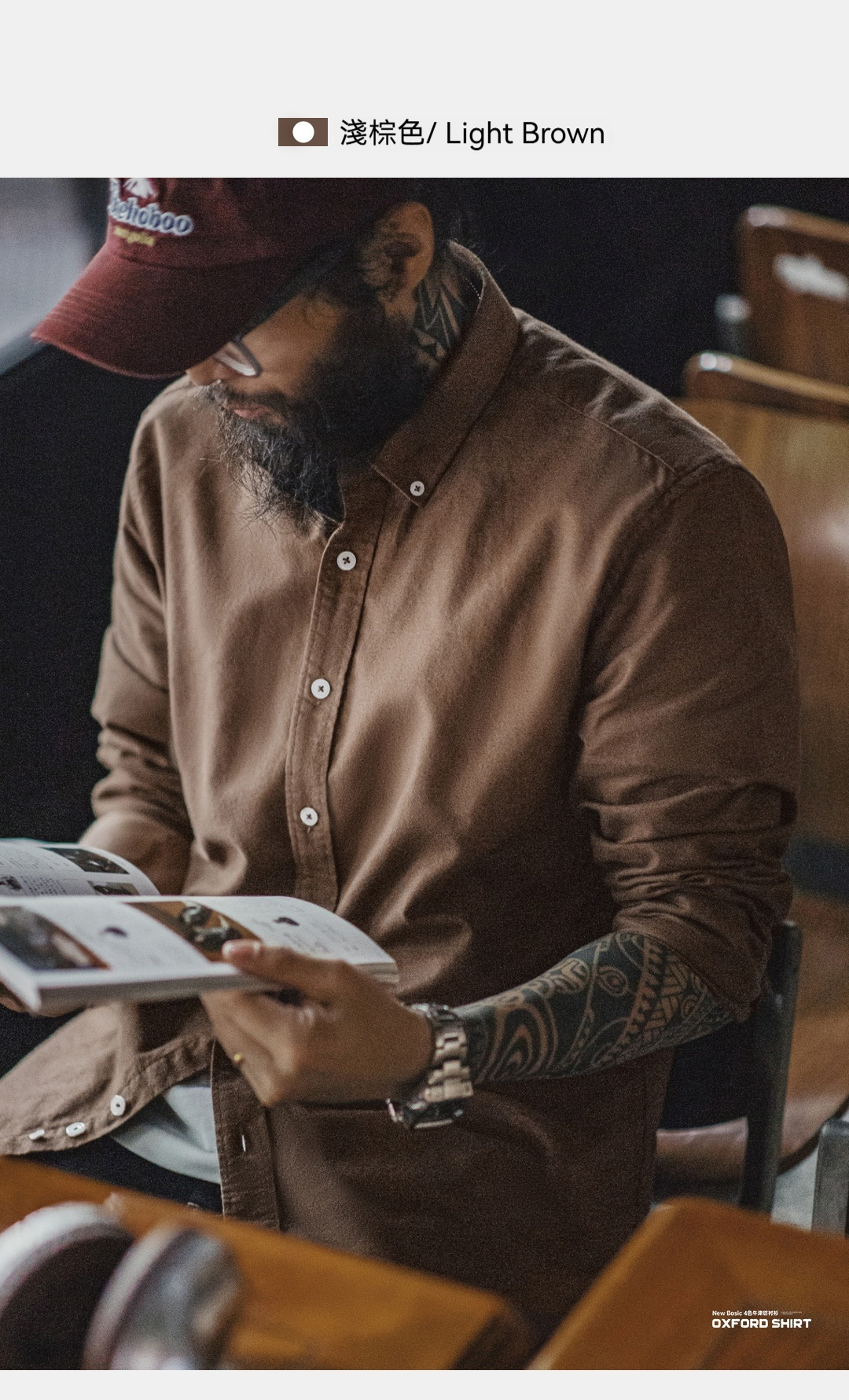 美式休閒純色牛津紡襯衫長袖外套純棉牛津布薄款襯衣男秋