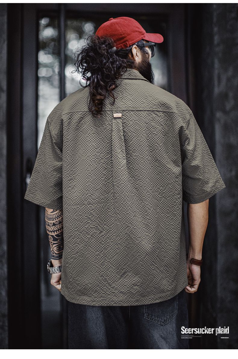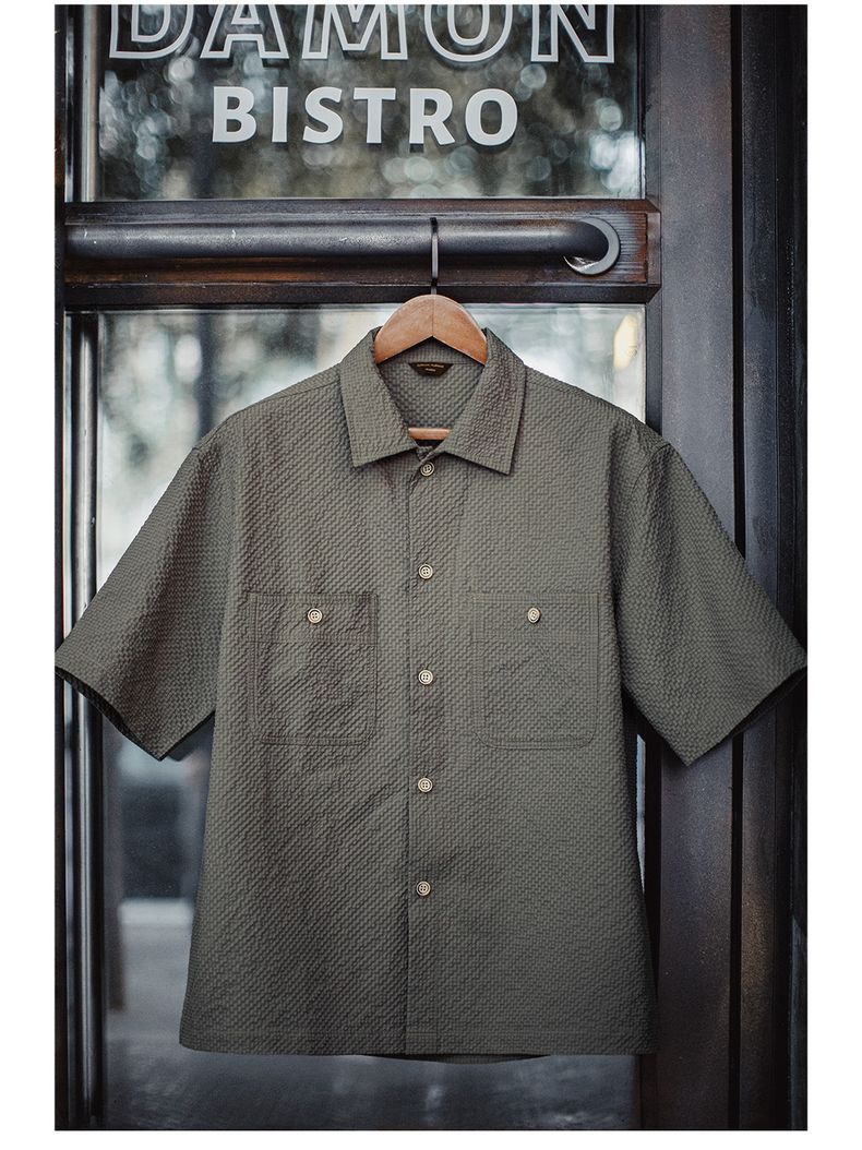 美式休閒AIRY空氣感泡泡紗襯衫透氣薄款襯衣外套男春夏