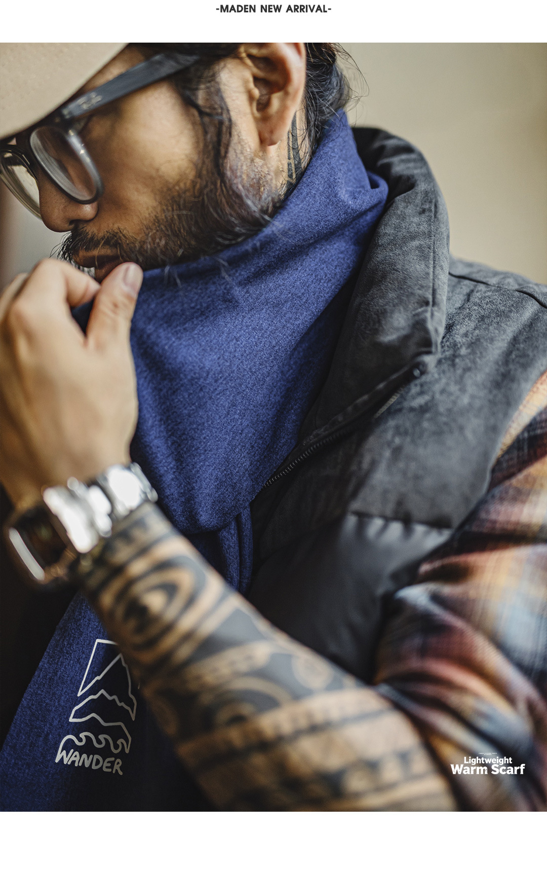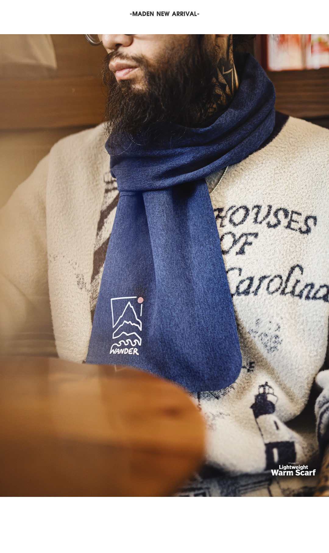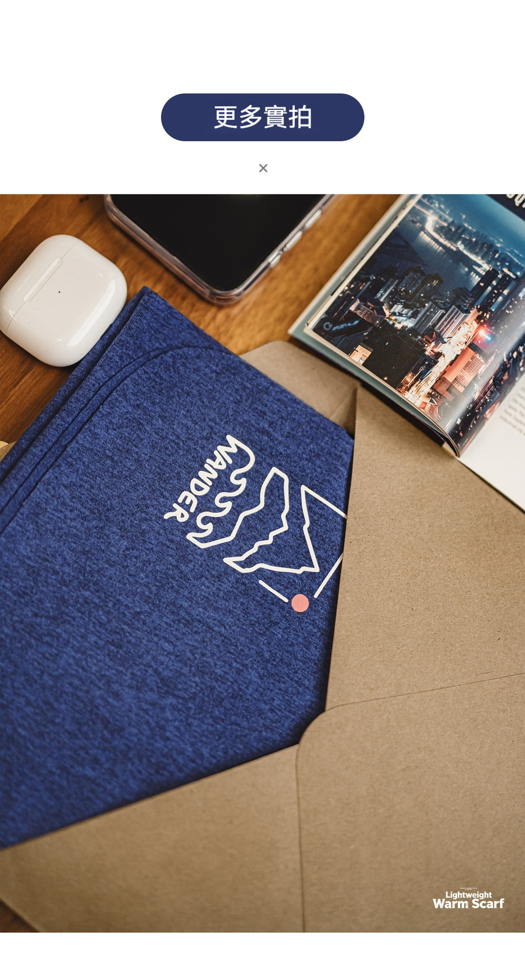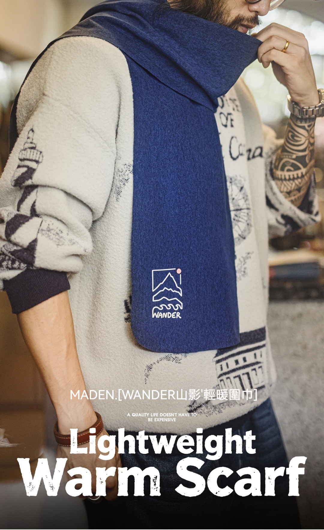 美式山影藍色印花圍巾保暖長圍脖披肩百搭薄款男士秋冬季