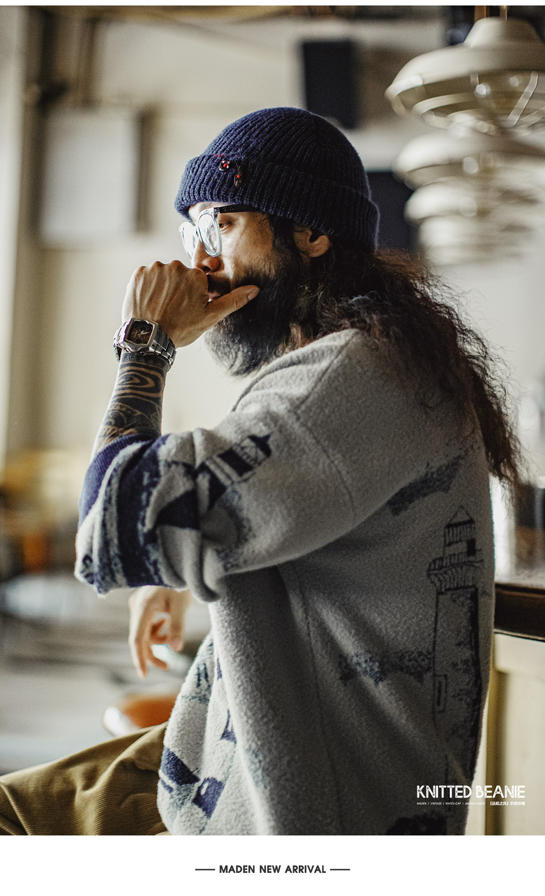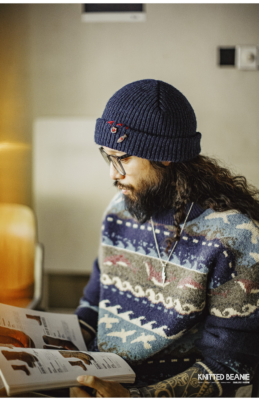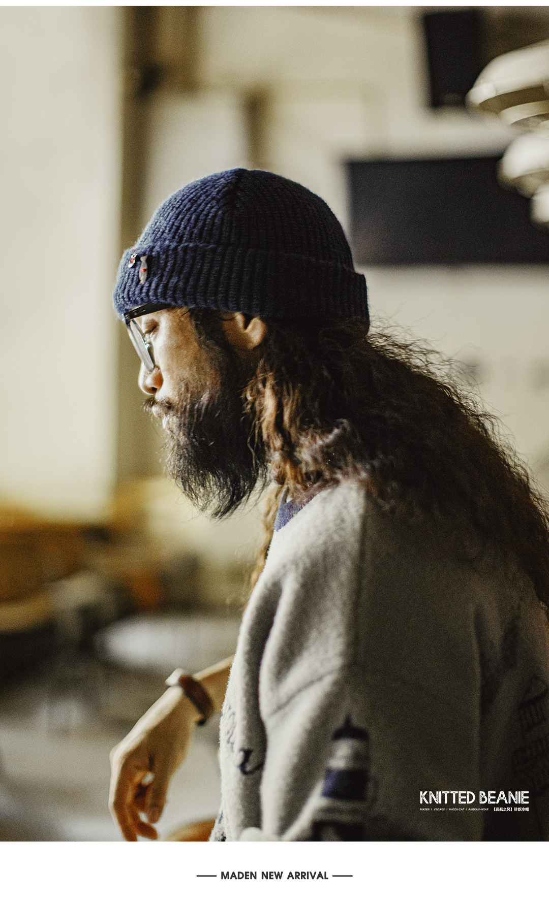 美式復古北極絨藍色冷帽護耳防寒毛線保暖瓜皮帽子男秋冬