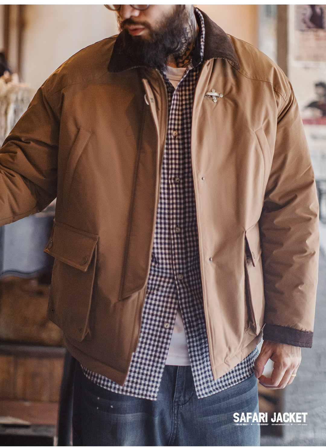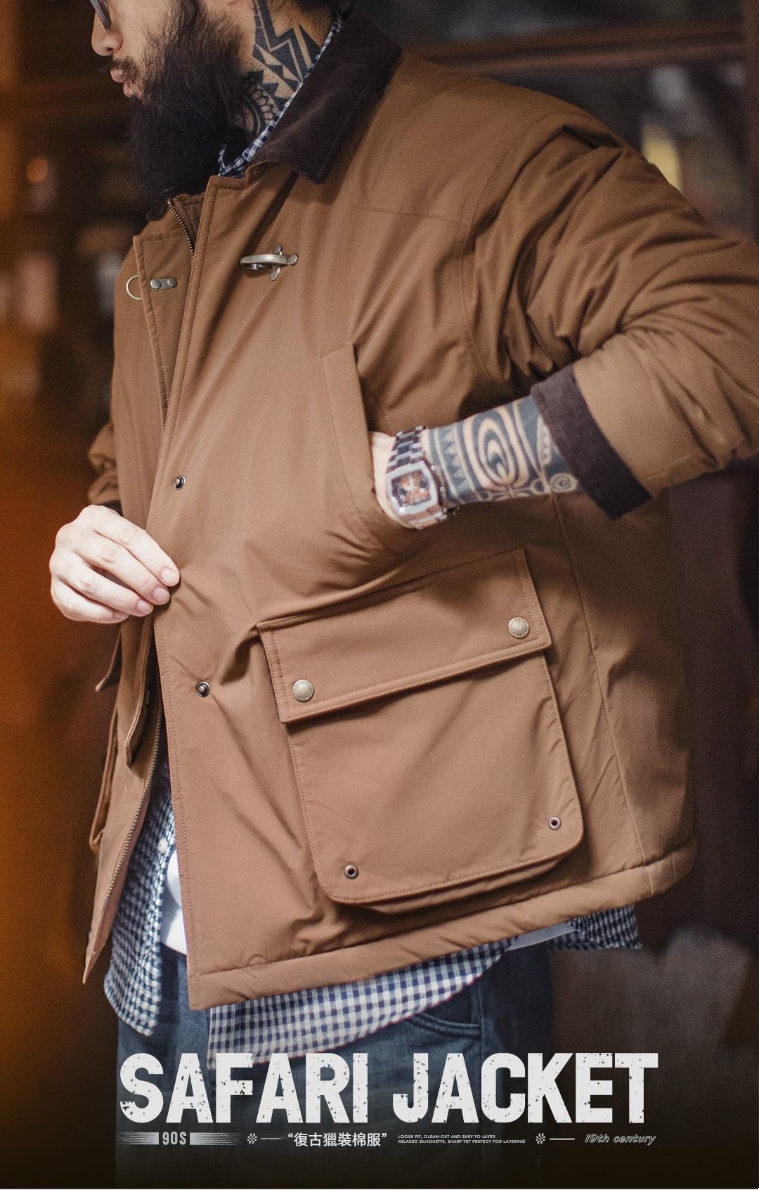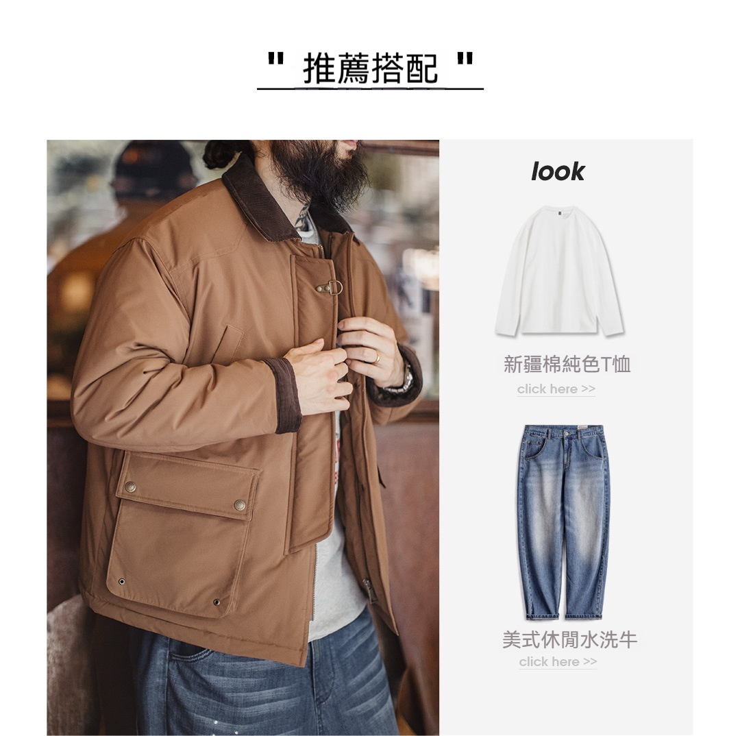 美式復古咖色棉服外套獵裝燈芯絨拼接巴恩風夾克男秋冬