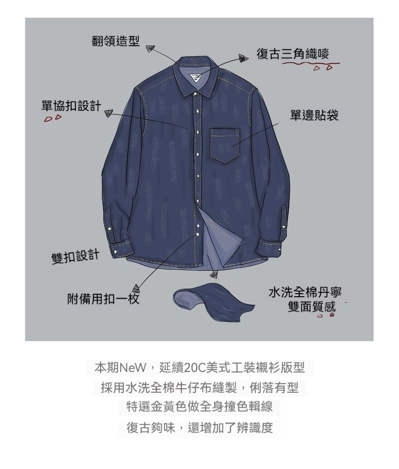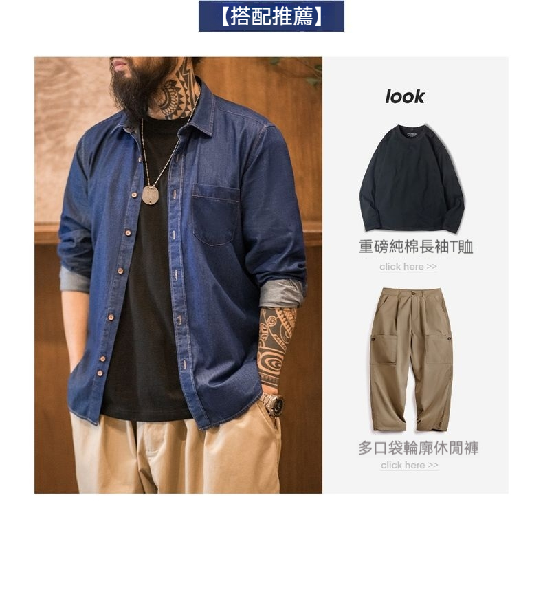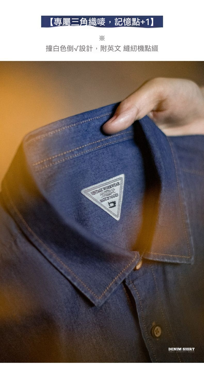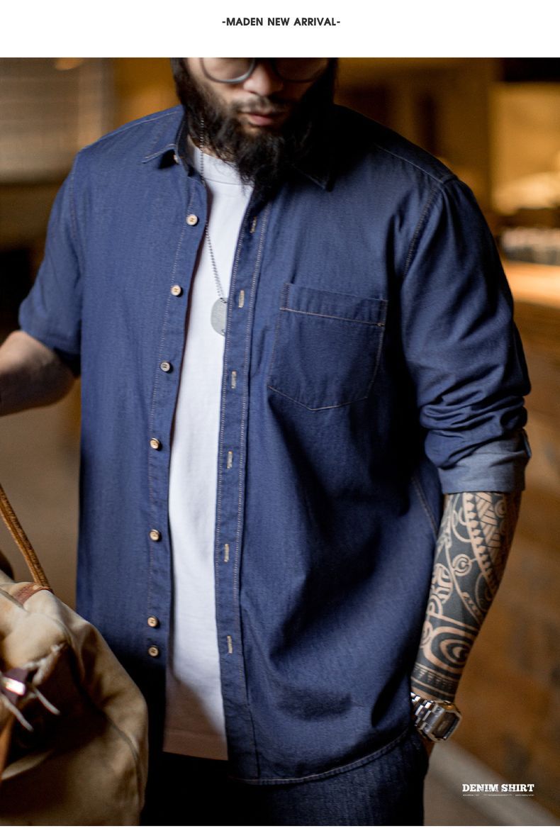 美式復古單口袋工裝牛仔襯衫丹寧休閒長袖修身襯衣男春季