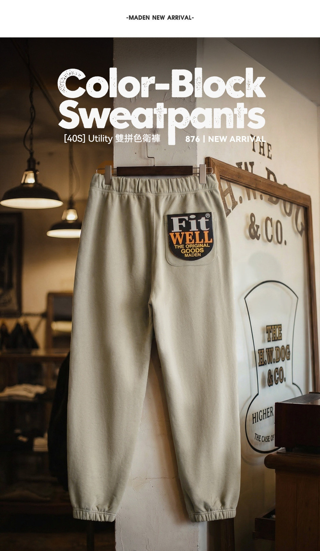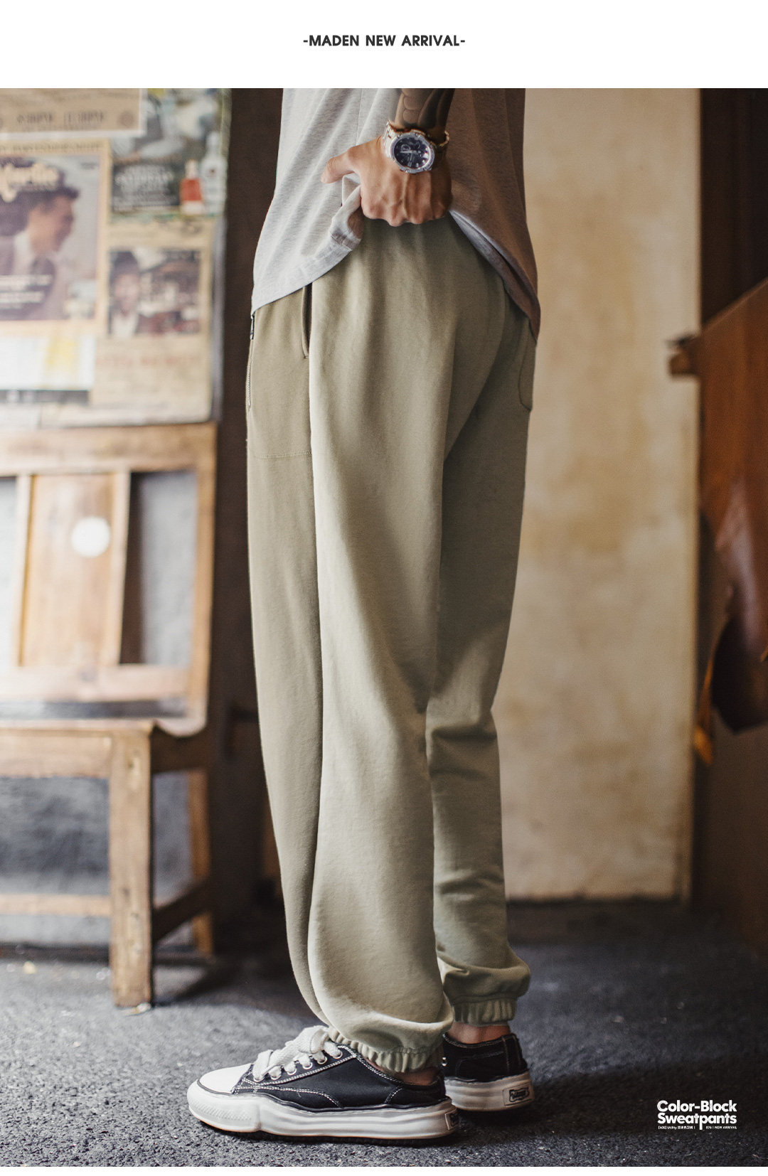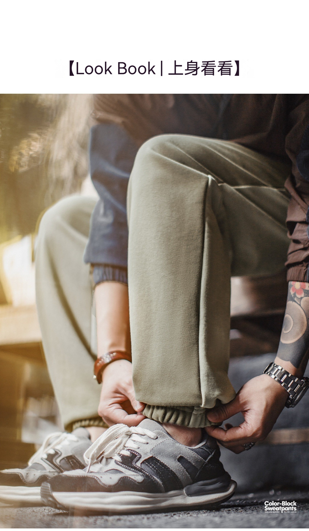 美式復古拼接撞色束腳衛褲松緊腰運動休閒長褲男款春