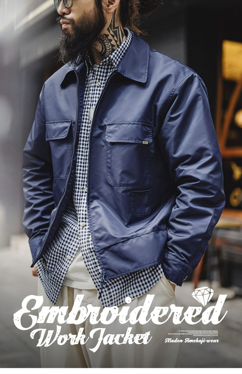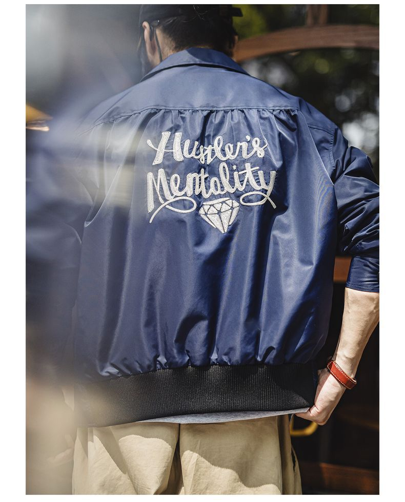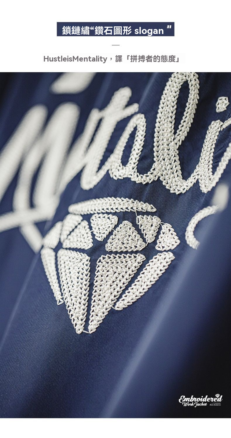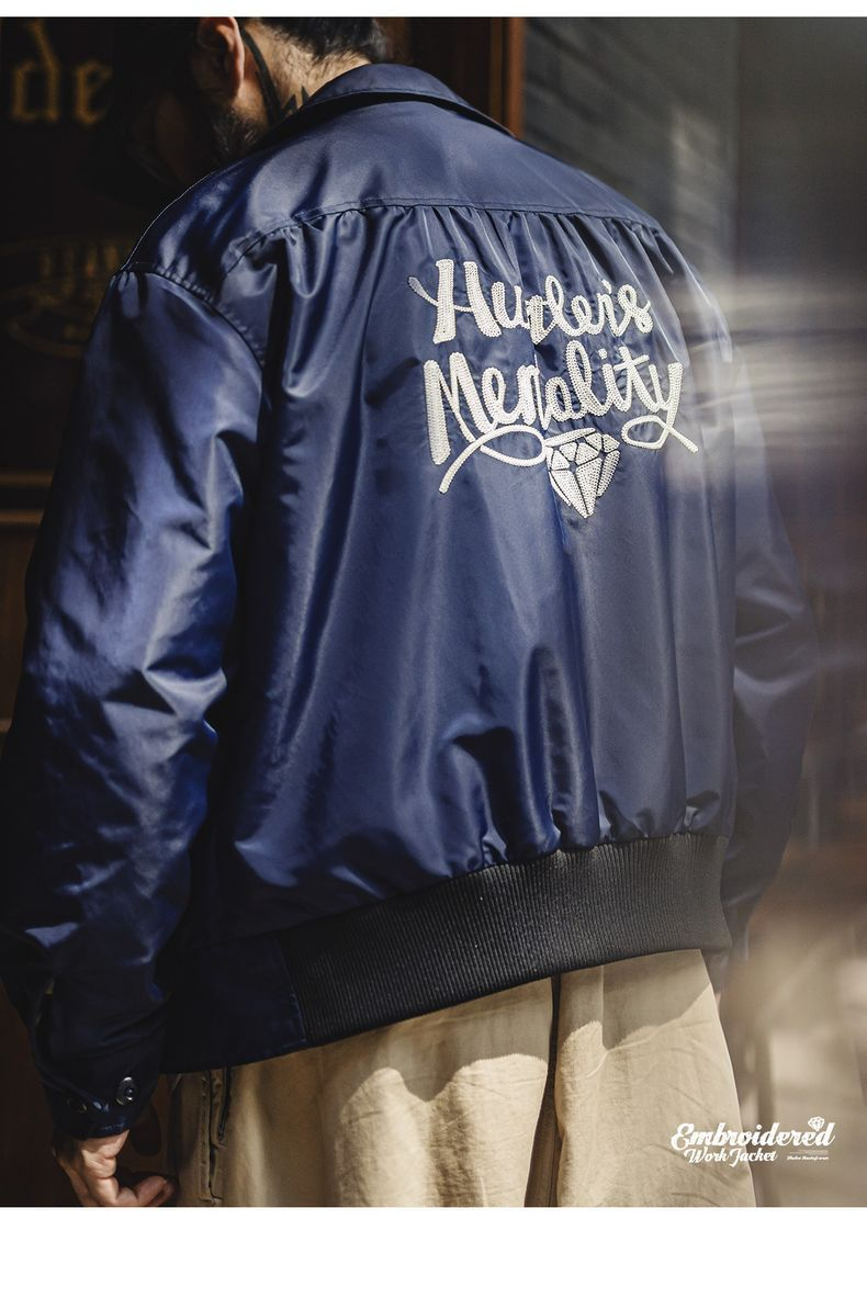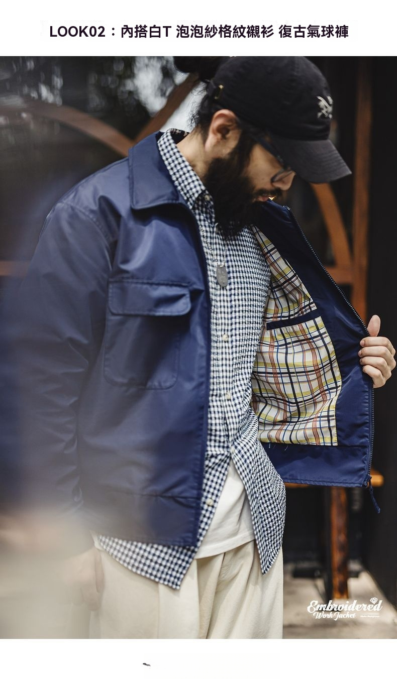 美式復古海軍藍刺繡夾克字母翻領拉鍊尼龍休閒外套男秋冬