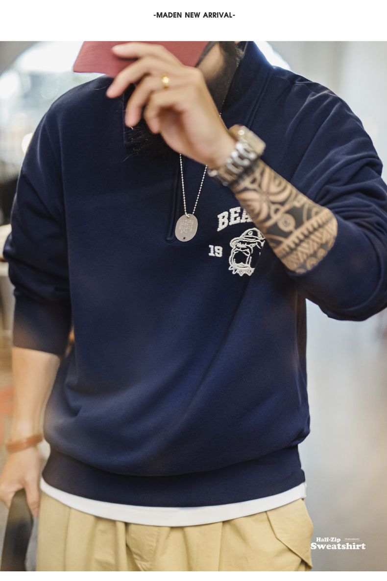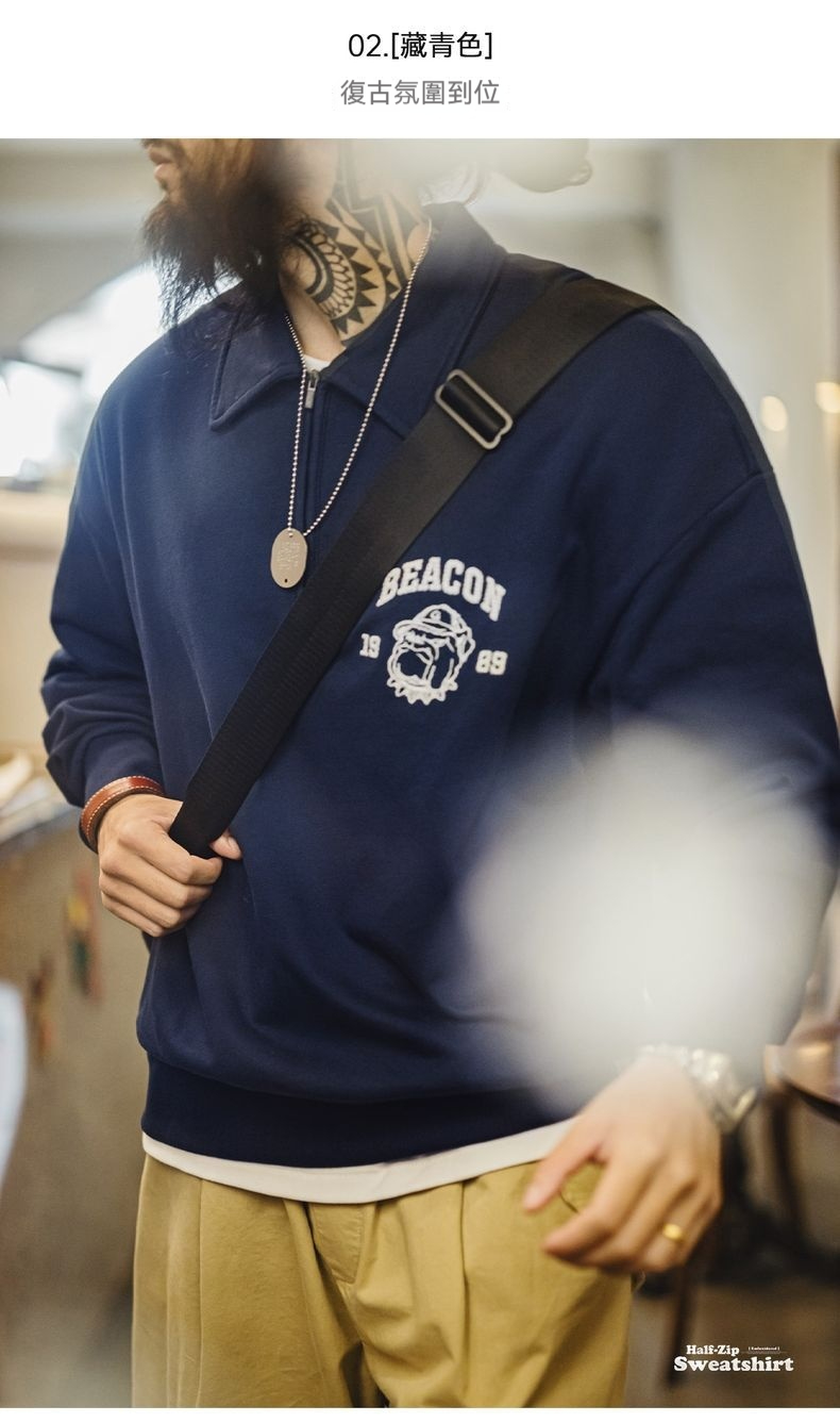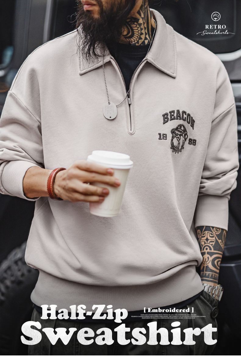 美式復古立體刺繡半開襟衛衣休閒翻領套頭polo衫上衣男春