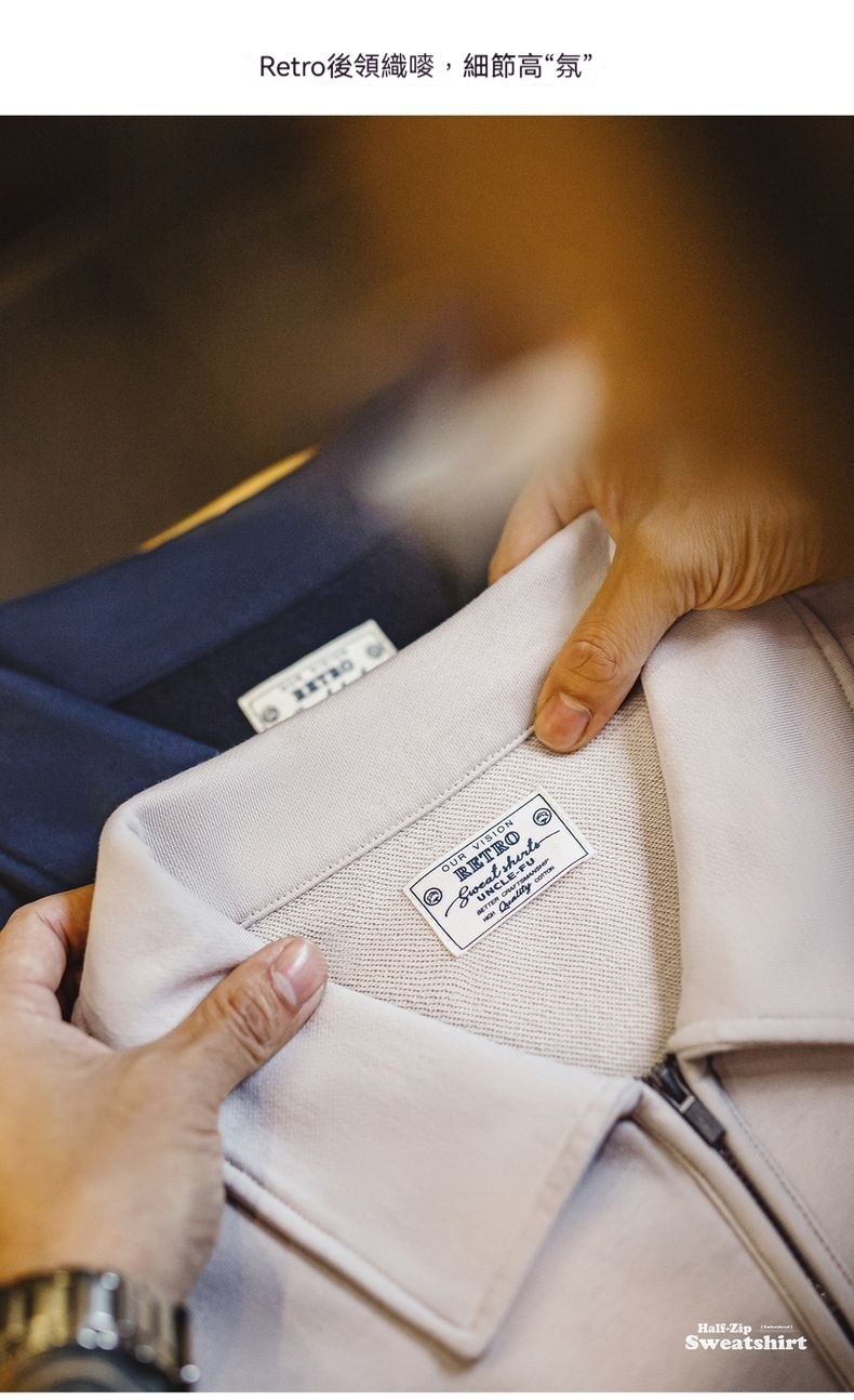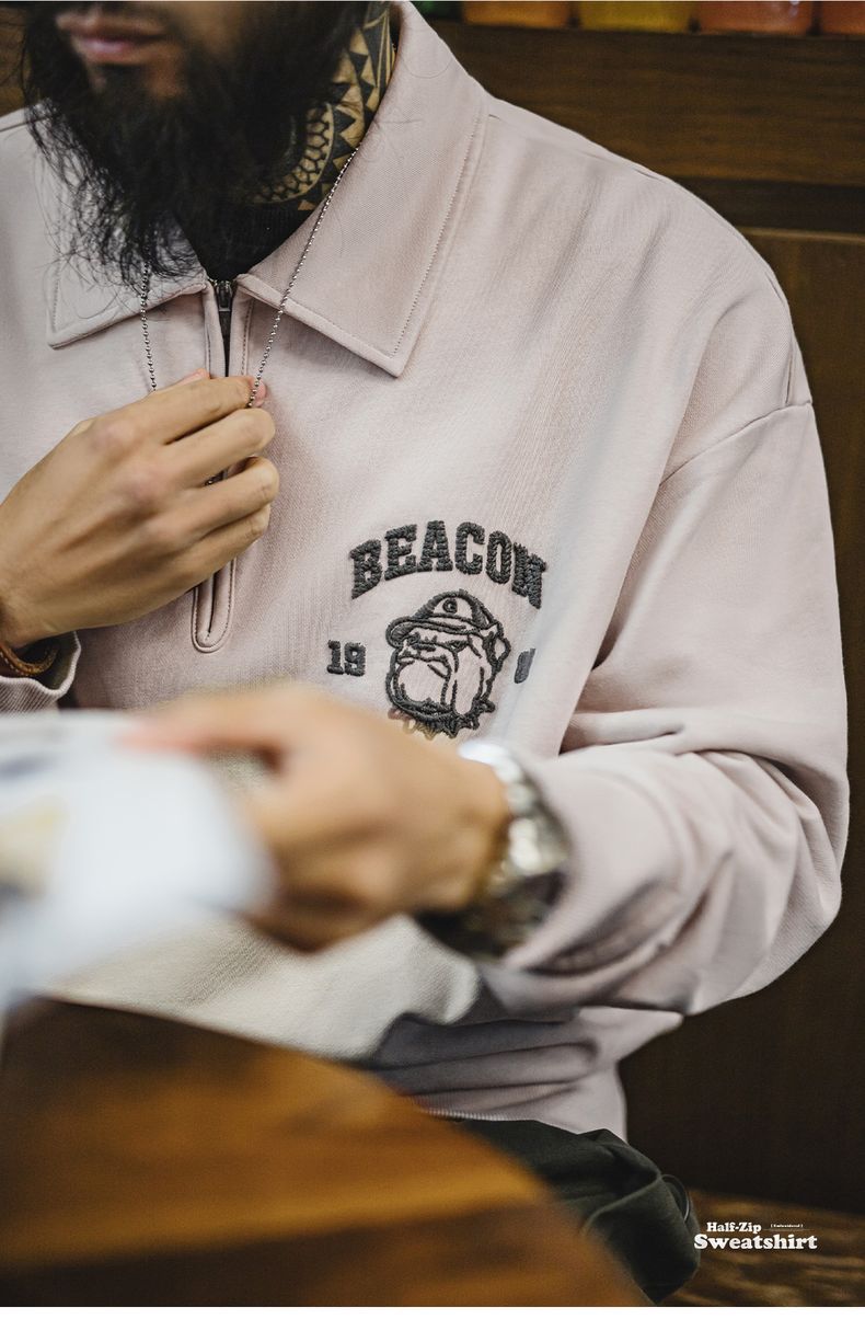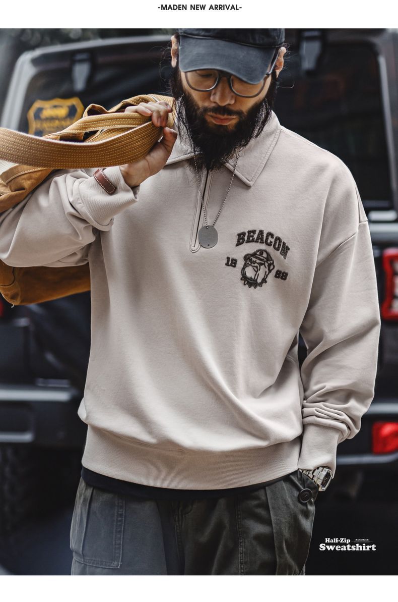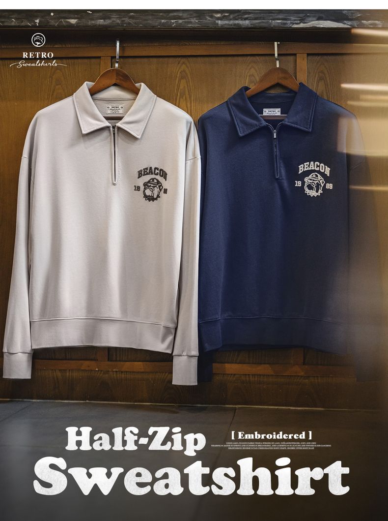 美式復古立體刺繡半開襟衛衣休閒翻領套頭polo衫上衣男春