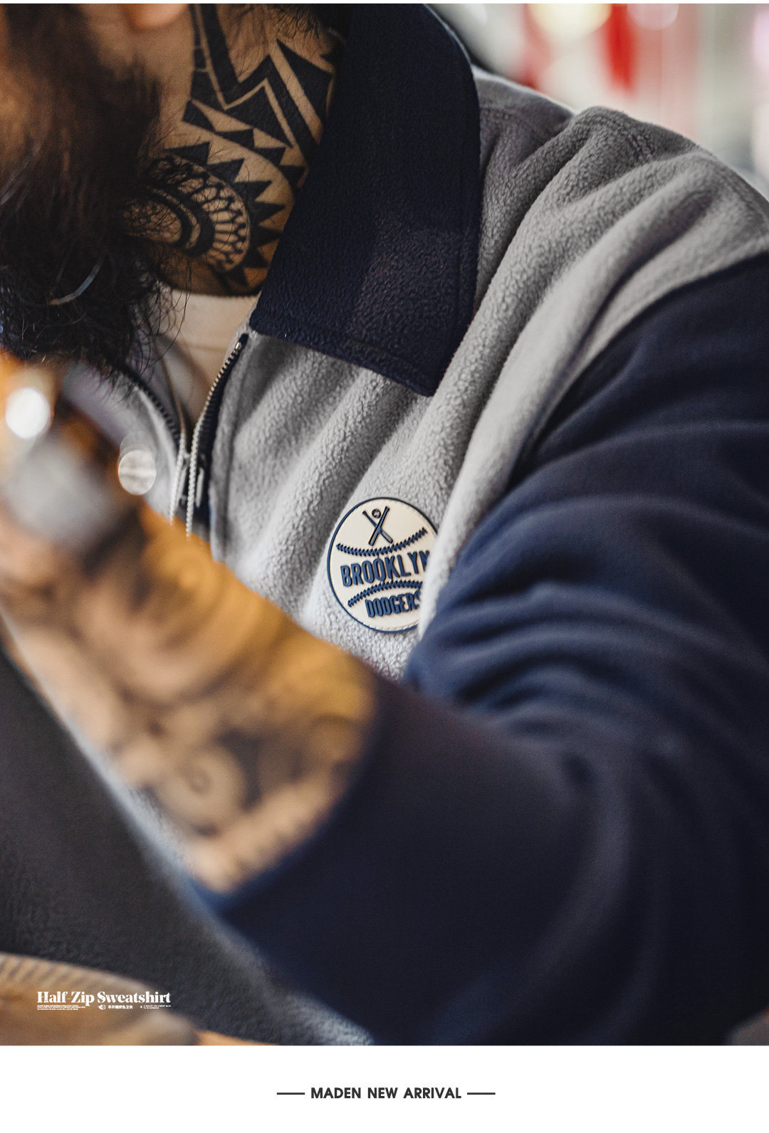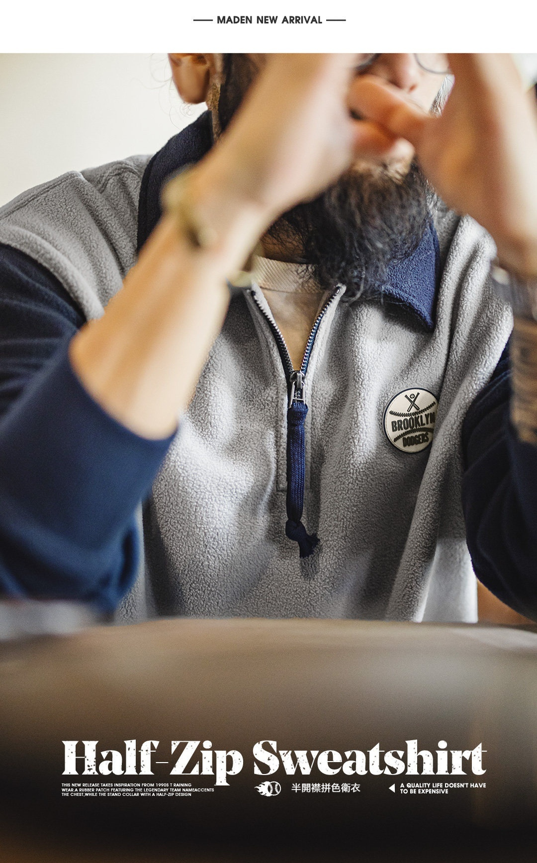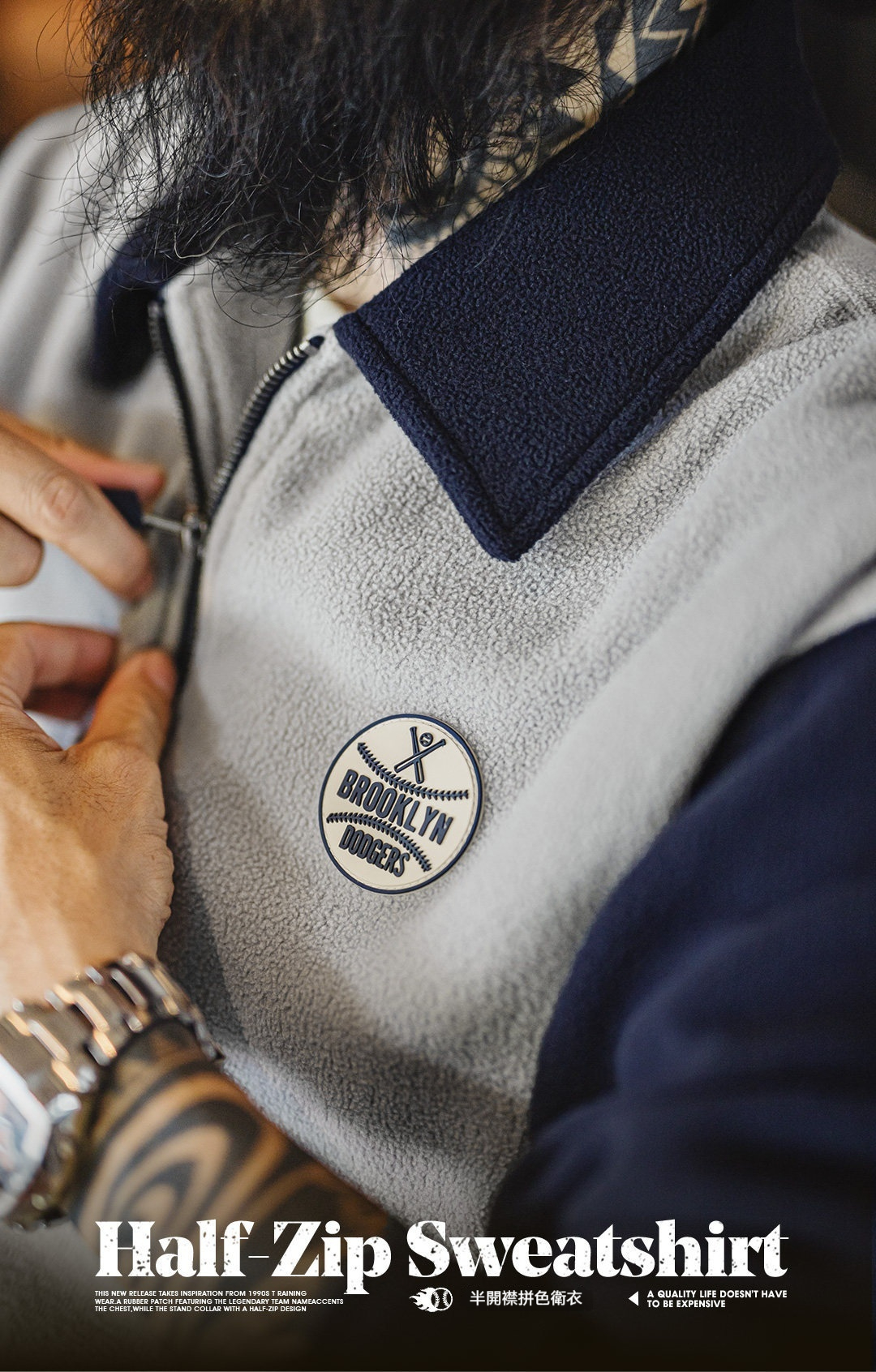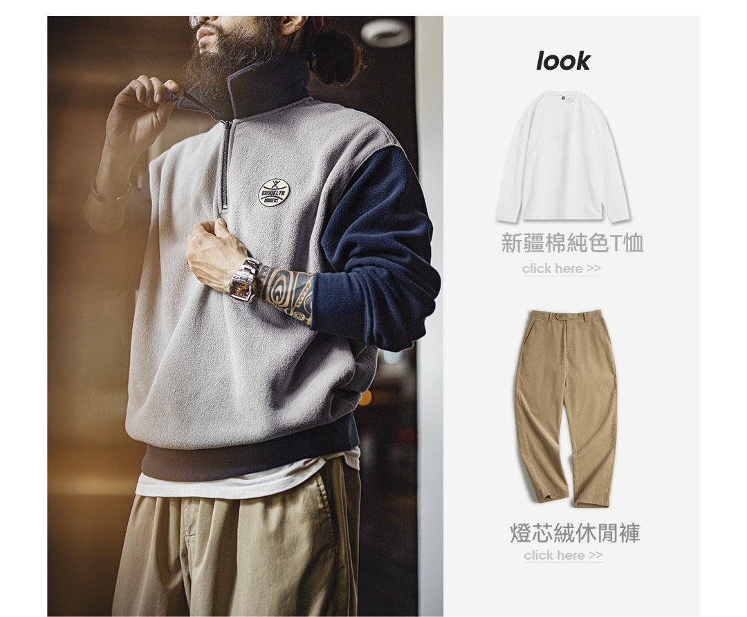美式搖粒絨半開襟衛衣學院風polo領撞色套頭保暖外套男秋