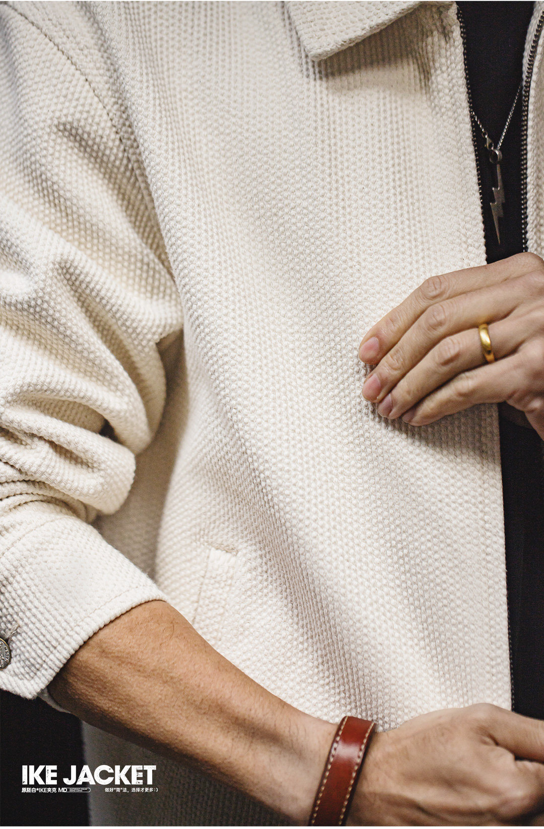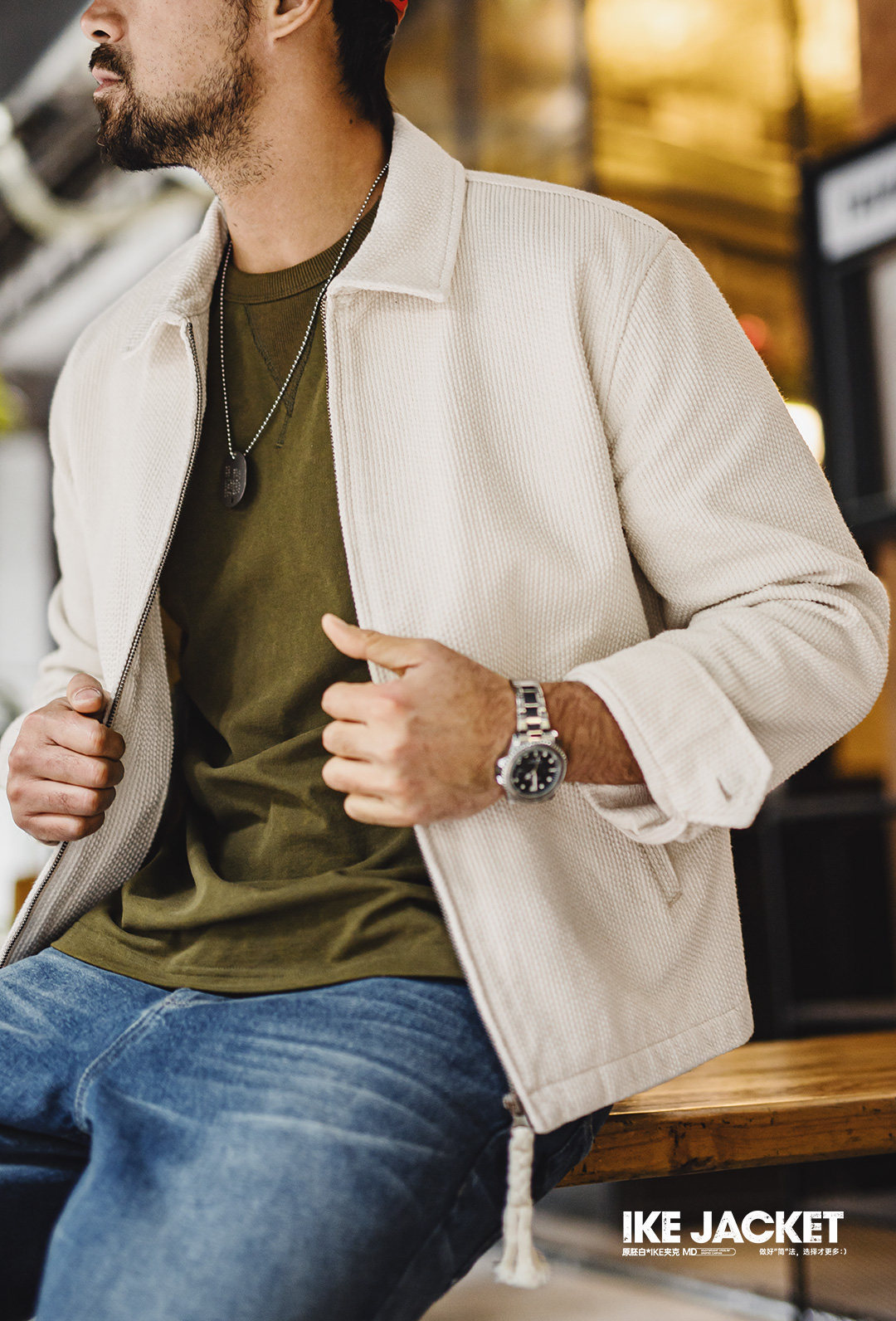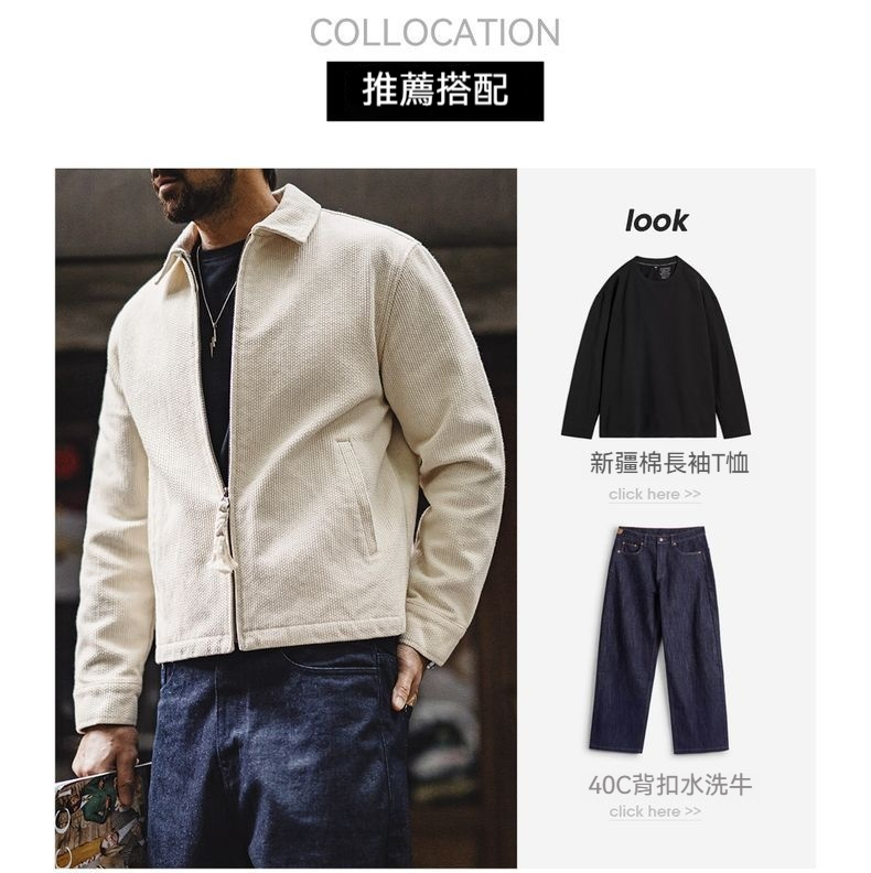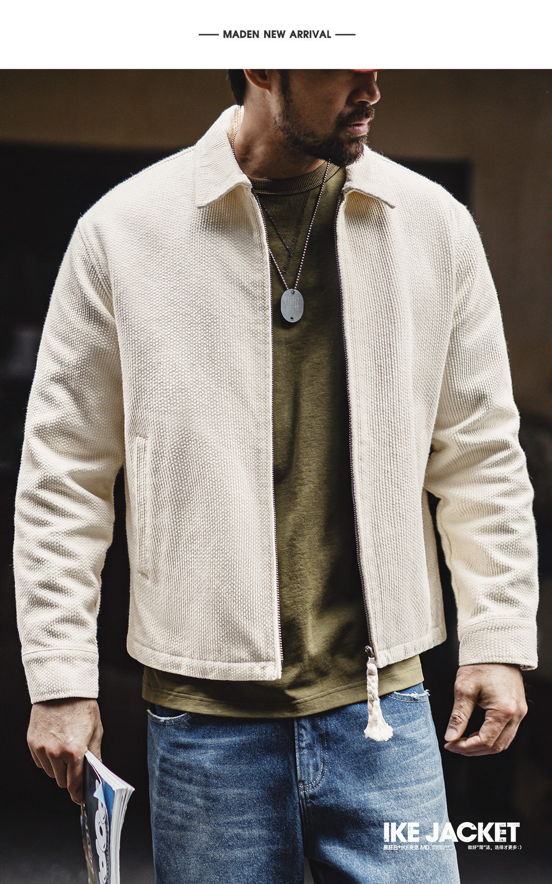 美式白色IKE教練夾克翻領重磅純棉正肩帆布短款外套男春