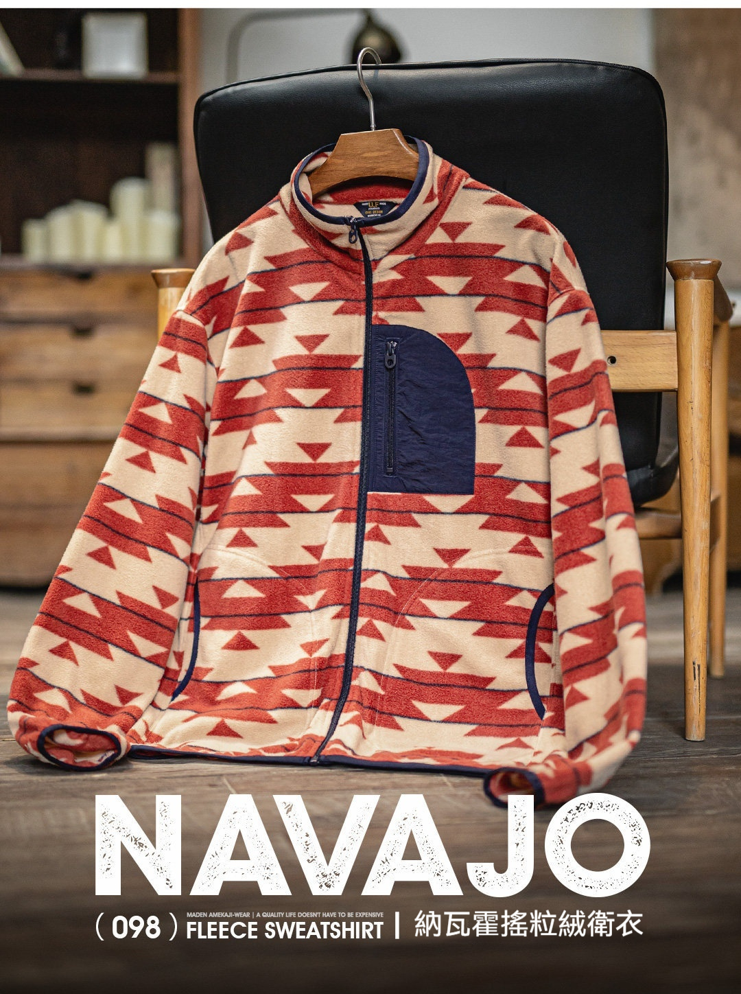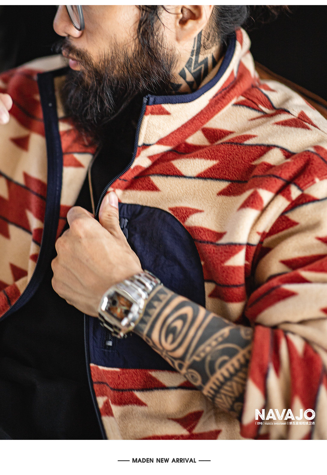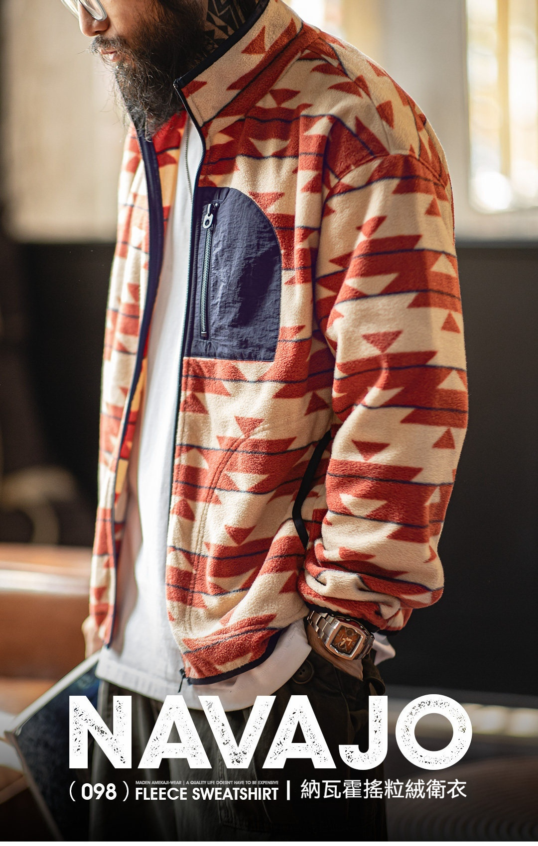 美式納瓦霍搖粒絨衛衣抓絨軟糯拉鍊開衫雙面立領外套男春