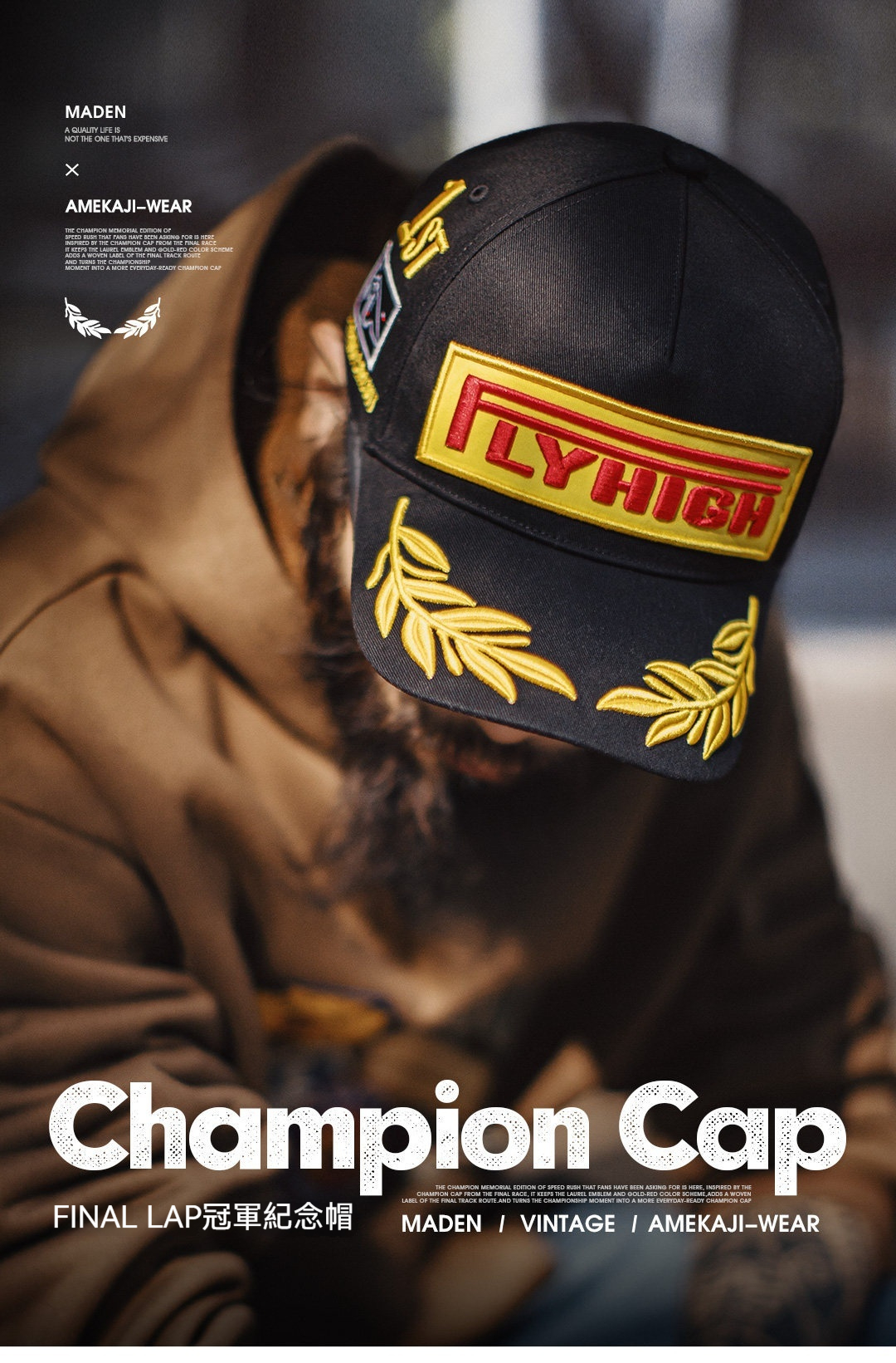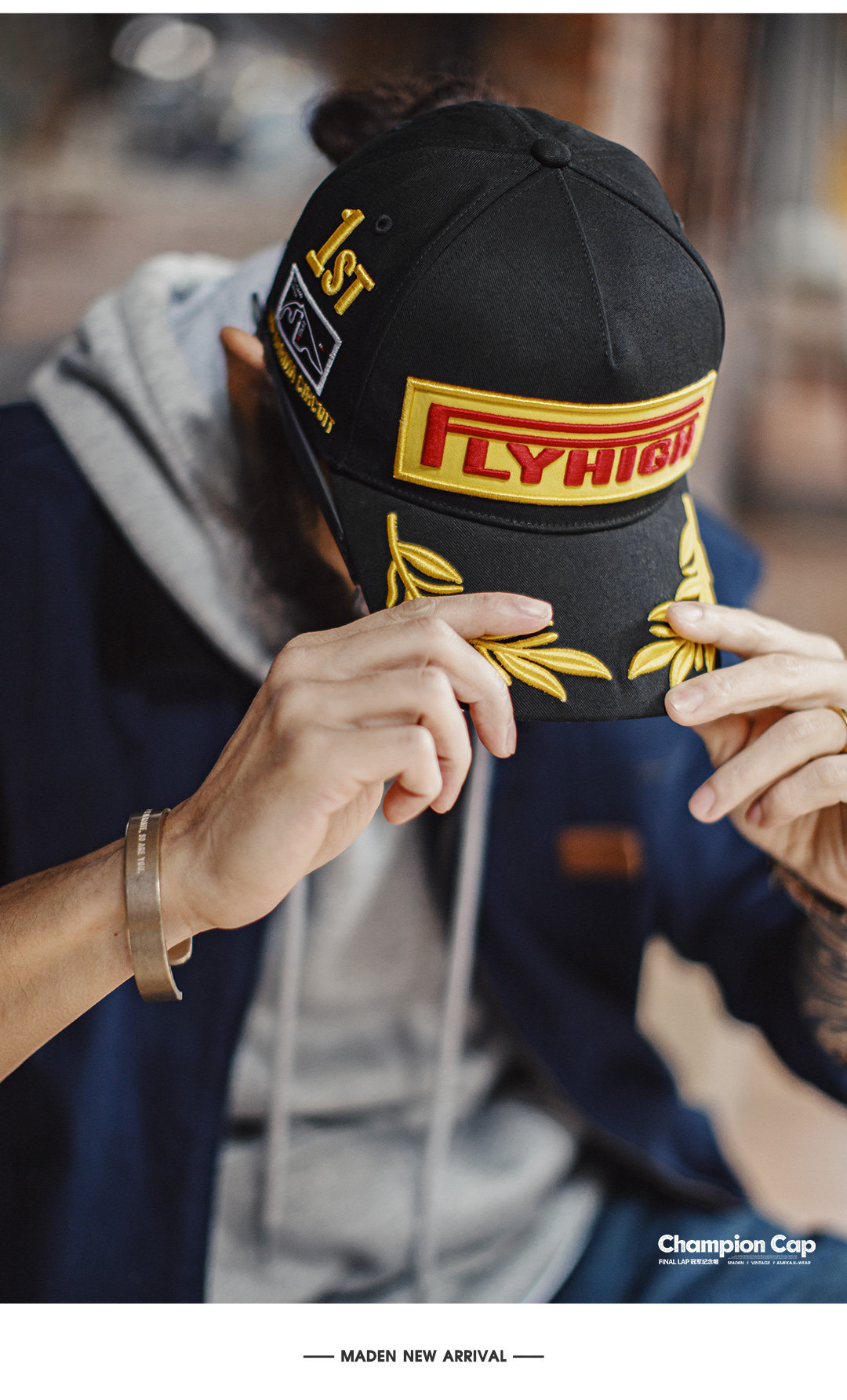 美式F1帽子冠軍刺繡平簷棒球帽黑色大頭圍鴨舌帽男款春
