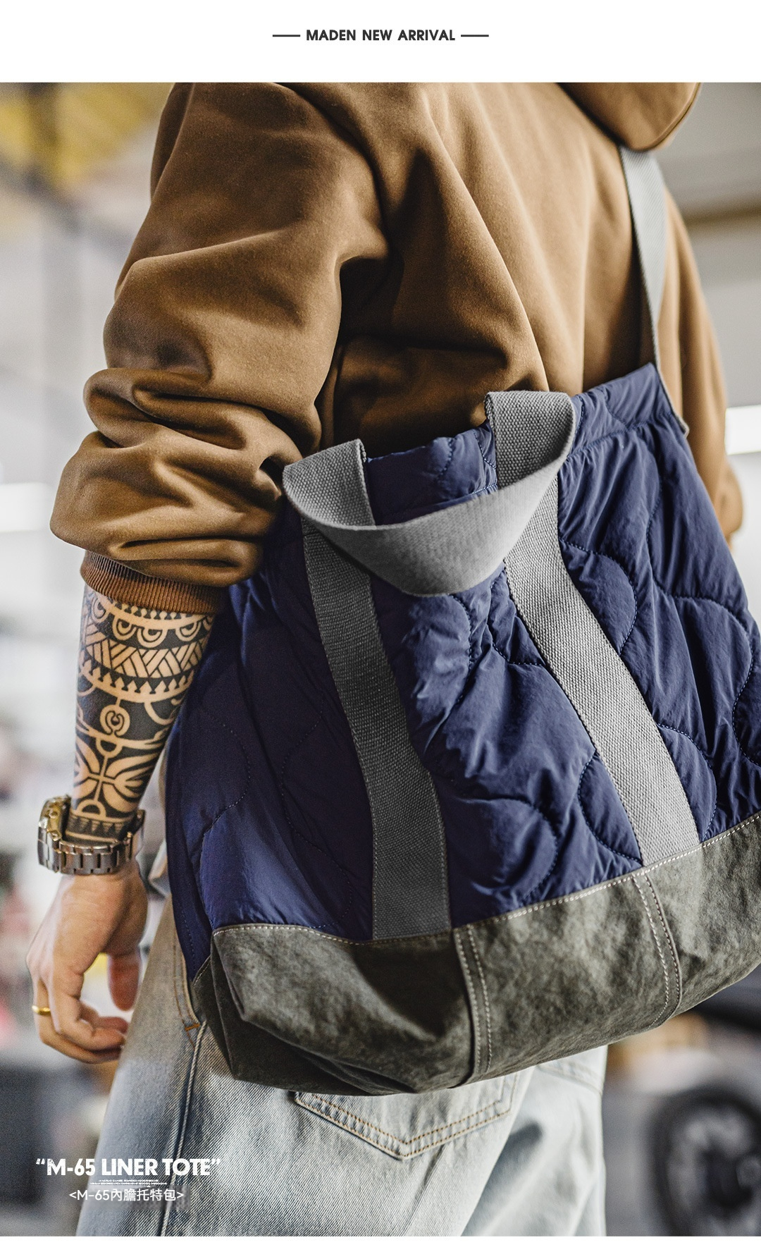 美式M65大容量內膽托特包電腦包通勤單肩包百搭手提包男