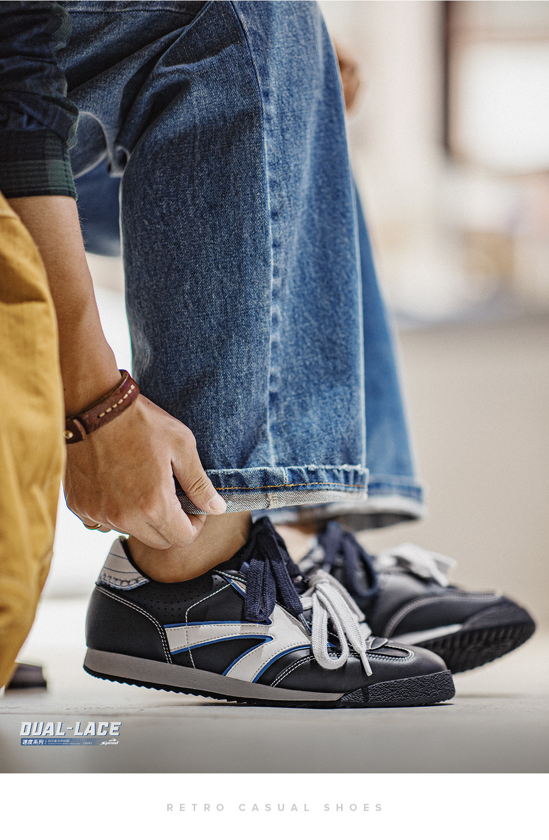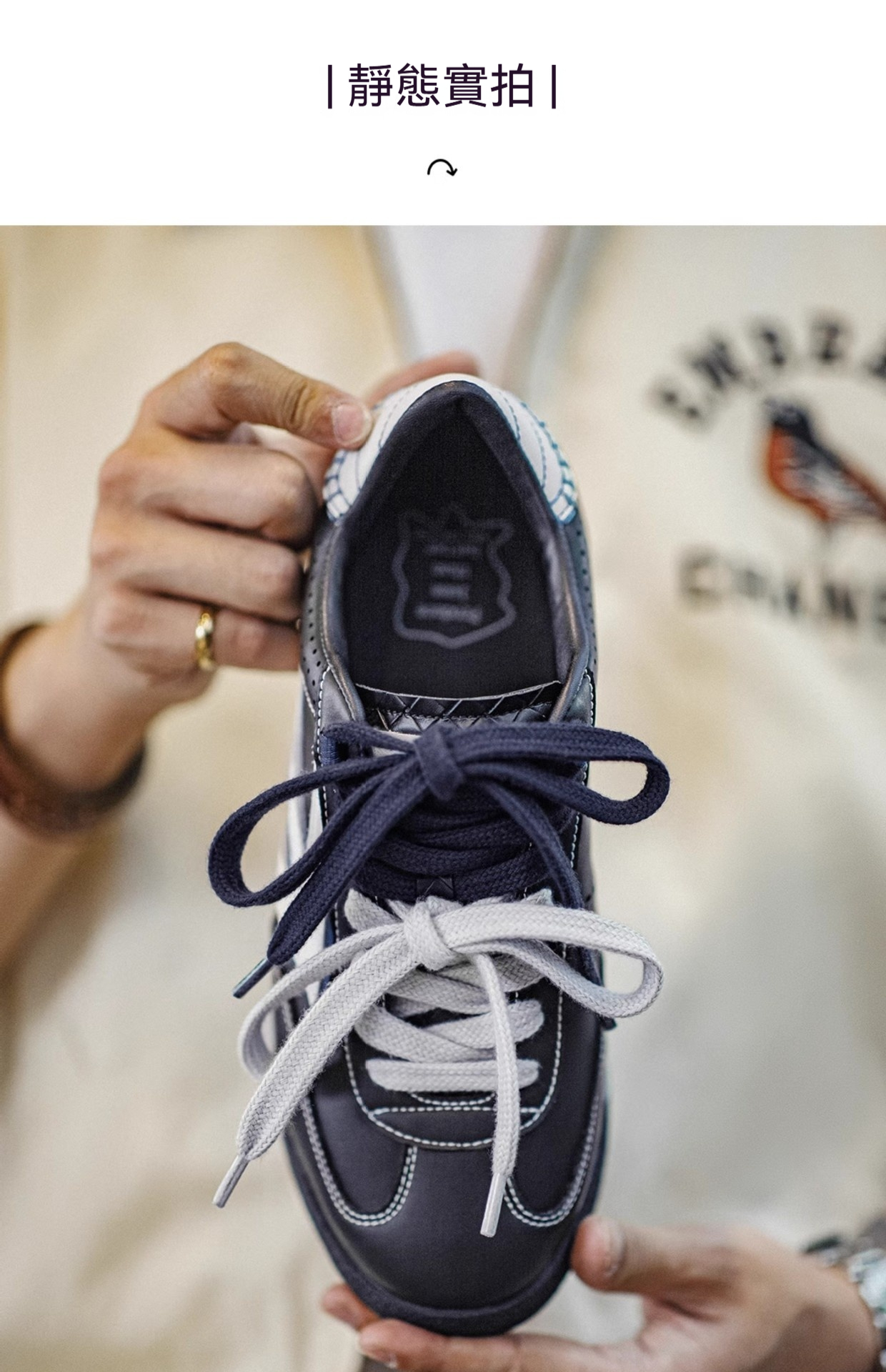 雙鞋帶藍色德訓鞋夏季男新款百搭軟底平底運動休閒復古阿甘鞋