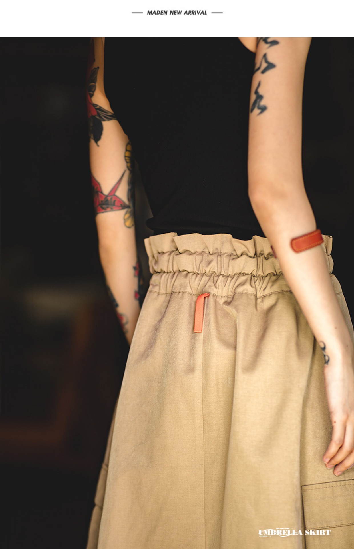 A字半身長裙高腰顯瘦收腰遮胯口袋工裝傘裙夏季