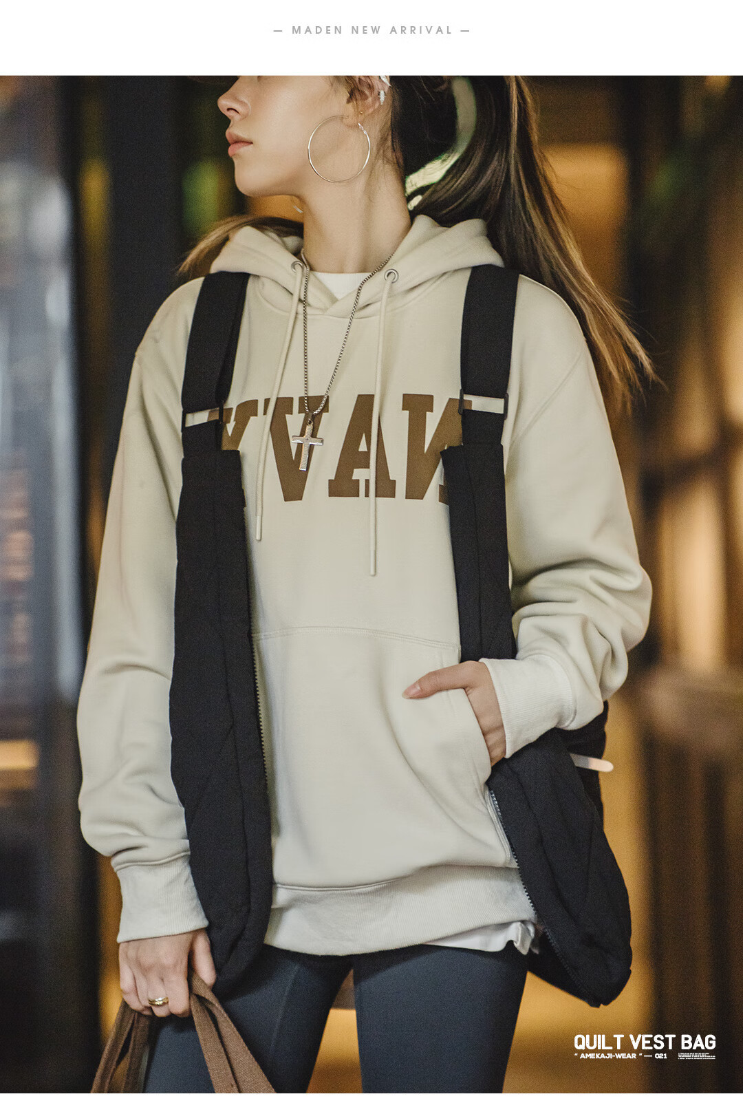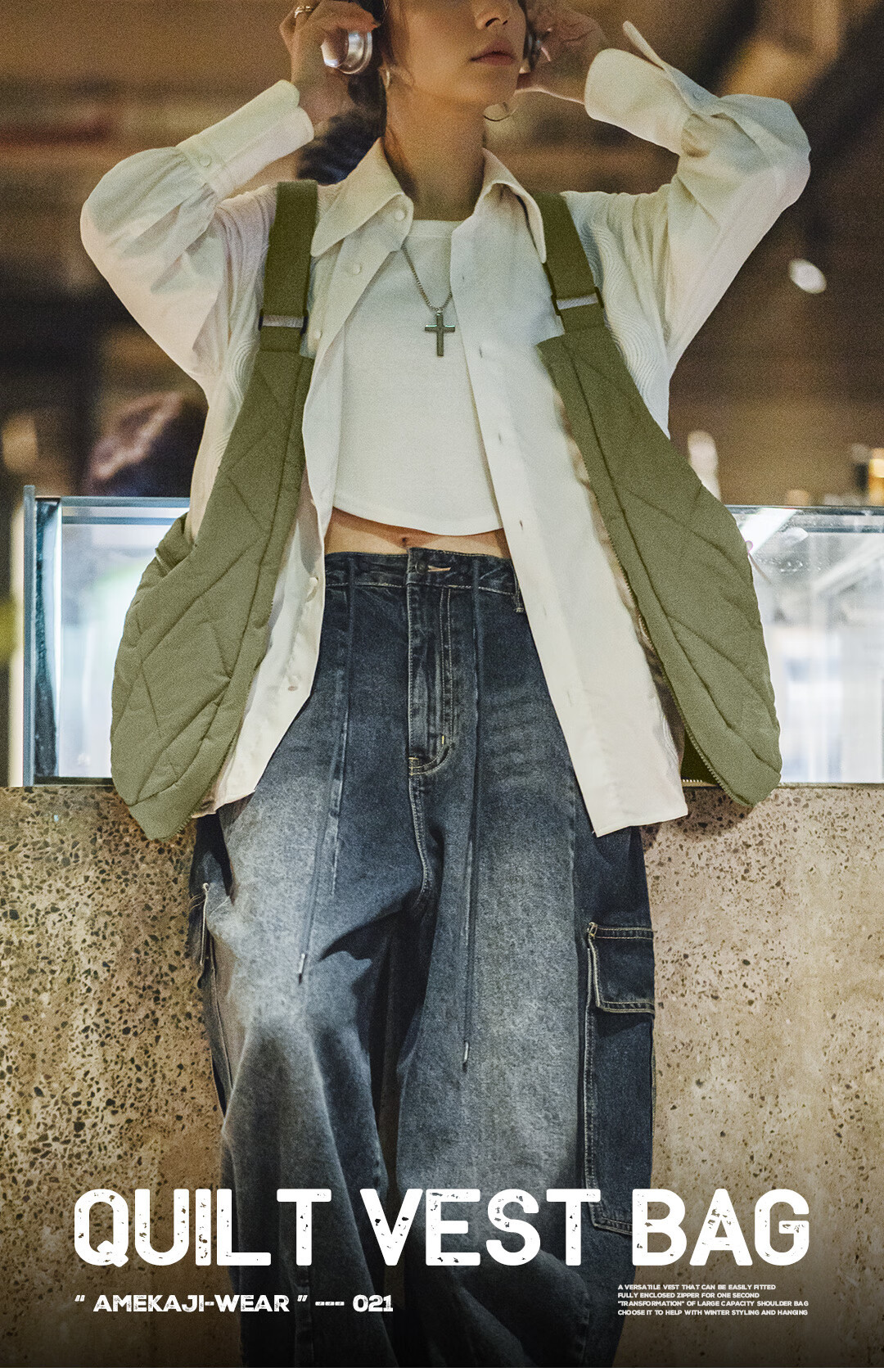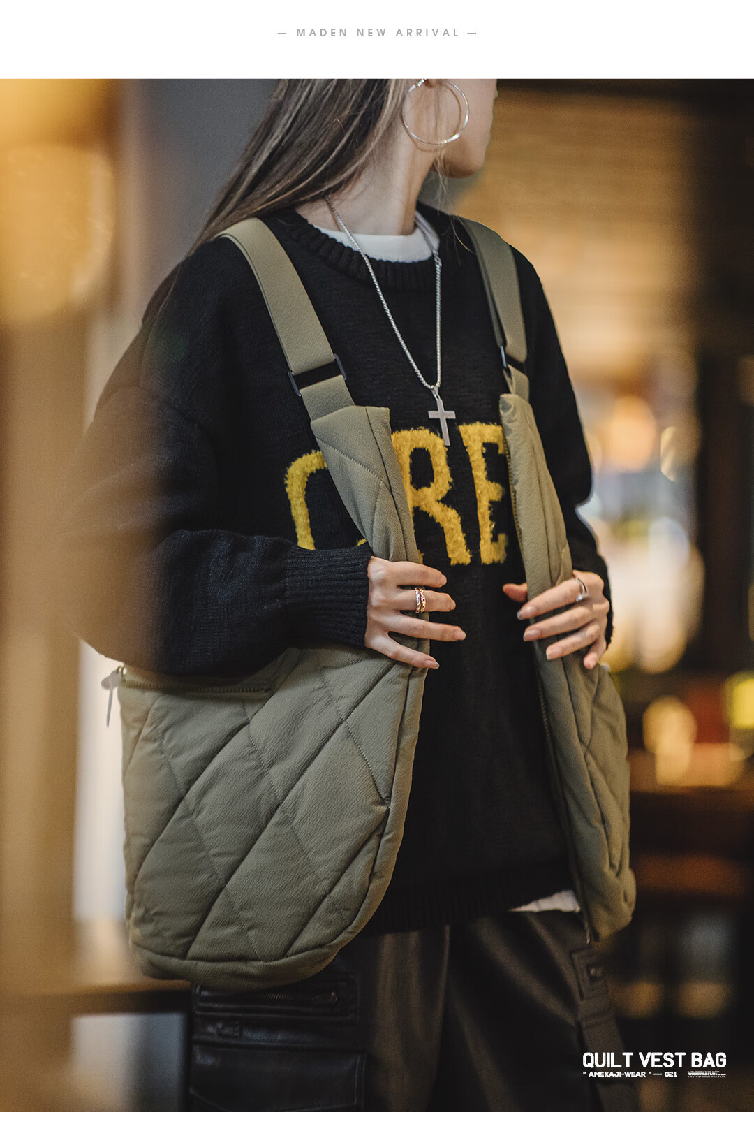 山系戶外絎縫多功能馬甲大容量斜挎包加棉坎肩背心秋冬