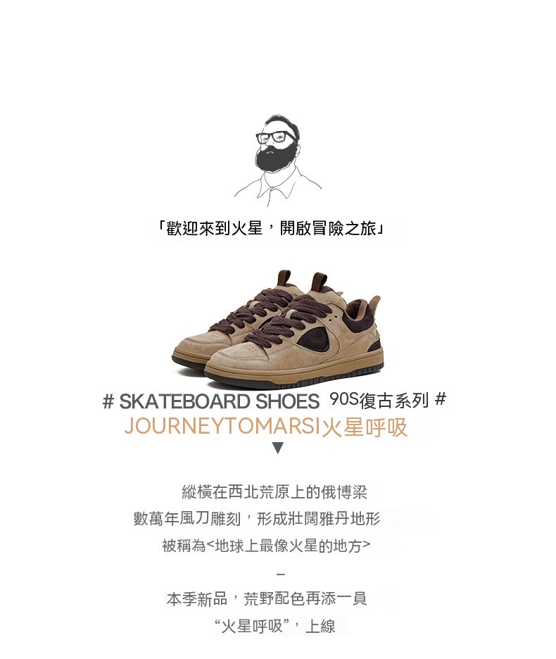 火星之旅滑板鞋男春新款透氣運動休閒鞋厚底復古小眾潮面包鞋
