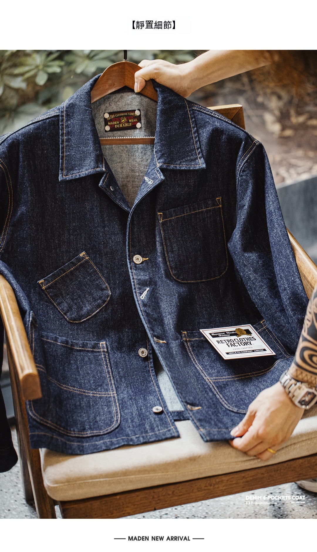 復古四袋牛仔夾克翻領丹寧阿美咔嘰多口袋外套男秋