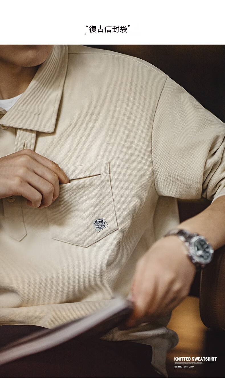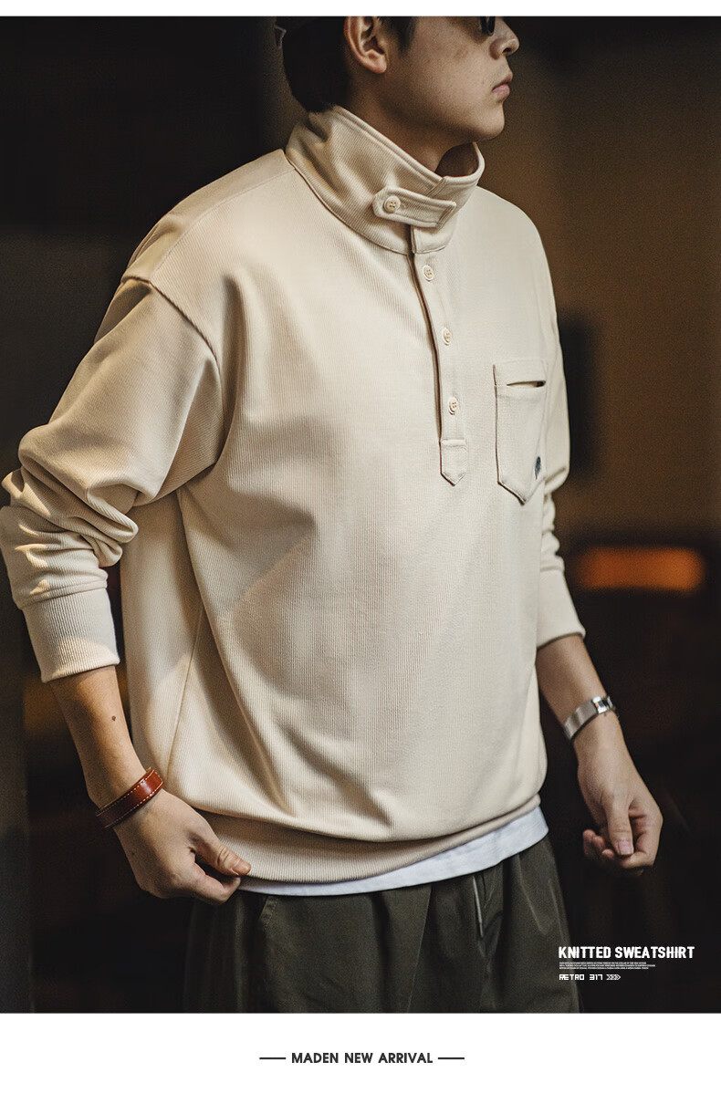 美式休閒半開襟立領衛衣慵懶風翻領針織Polo衫男春秋