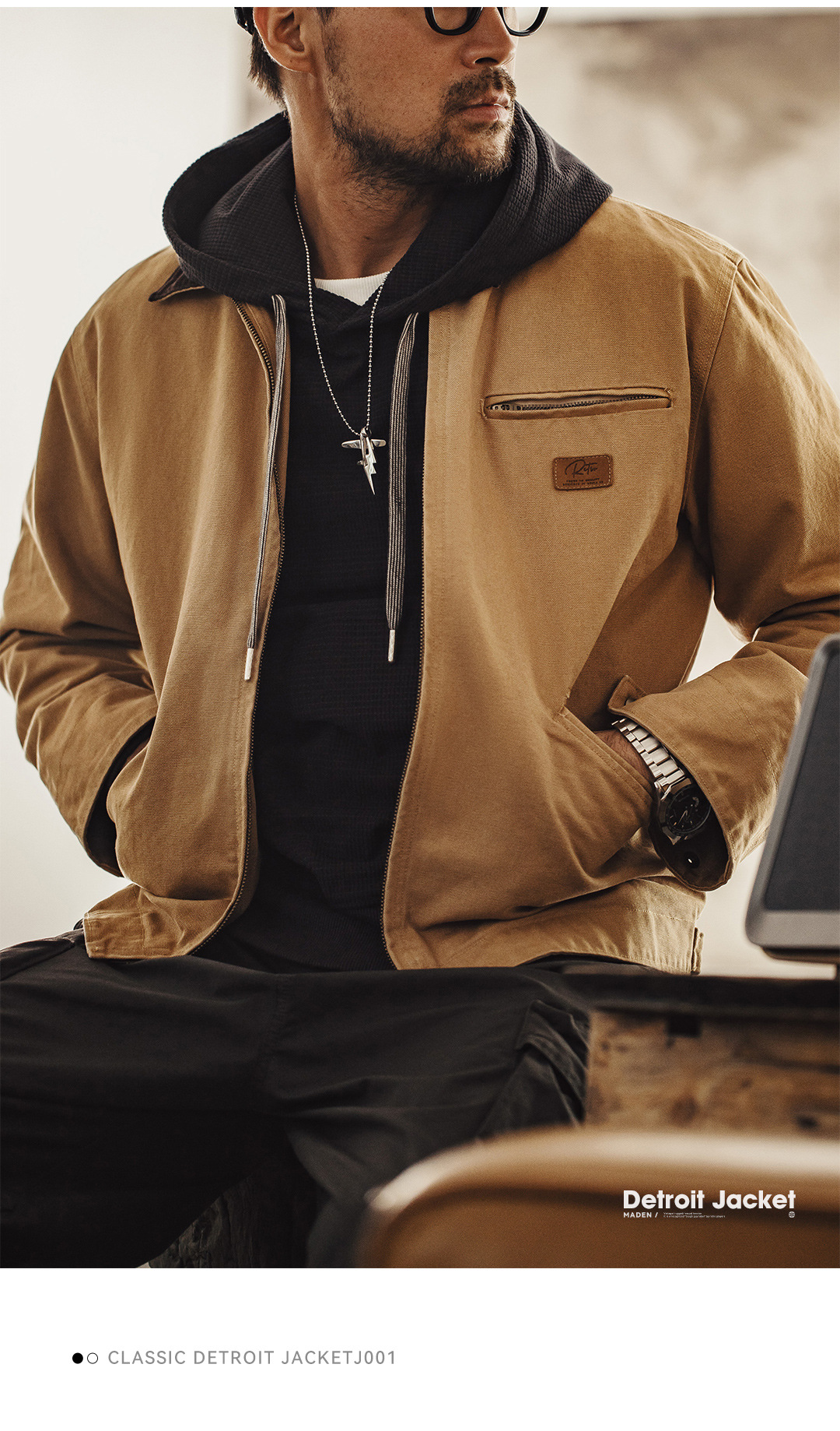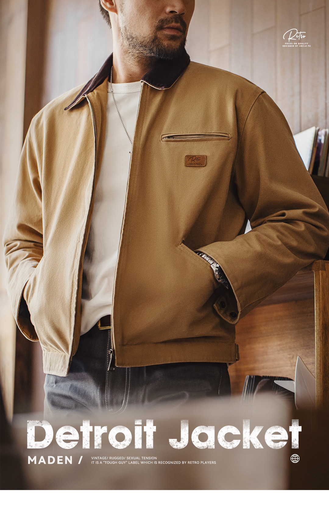 美式復古底特律獵裝夾克阿美咔嘰重磅帆布翻領外套男秋