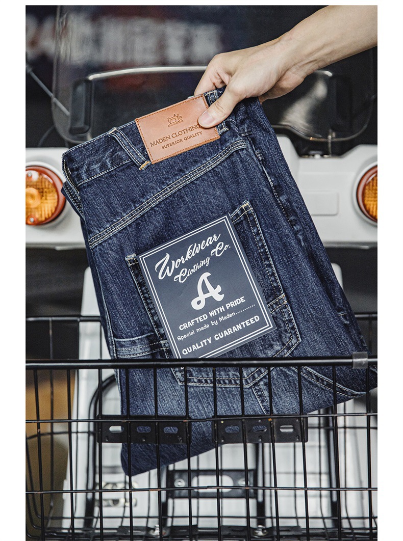 美式復古磨白伐木牛仔褲水洗丹寧寬鬆純棉直筒長褲子男夏