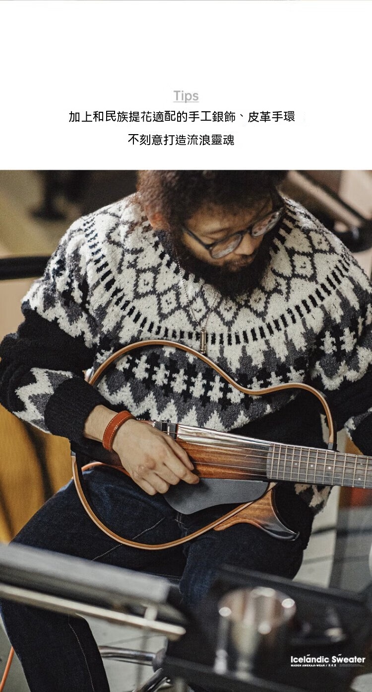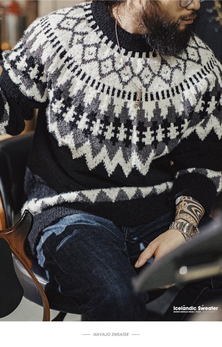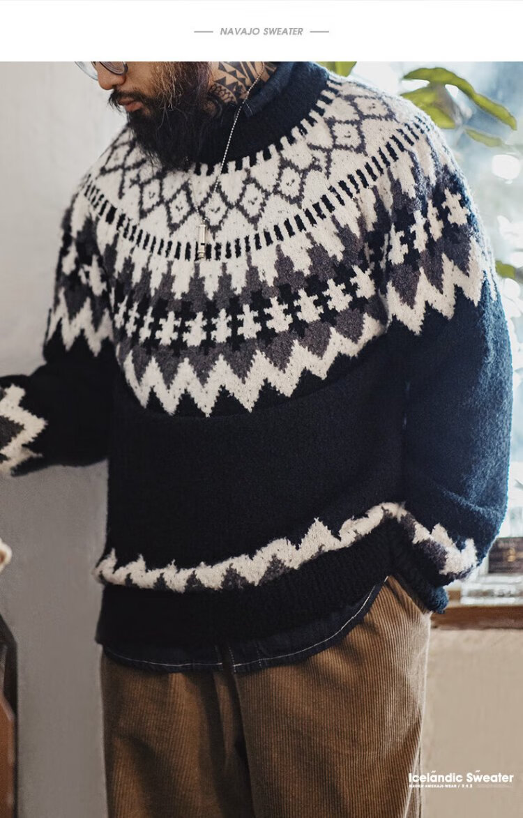 美式復古重磅冰島毛衣圓領費爾島提花打底針織衫男秋冬