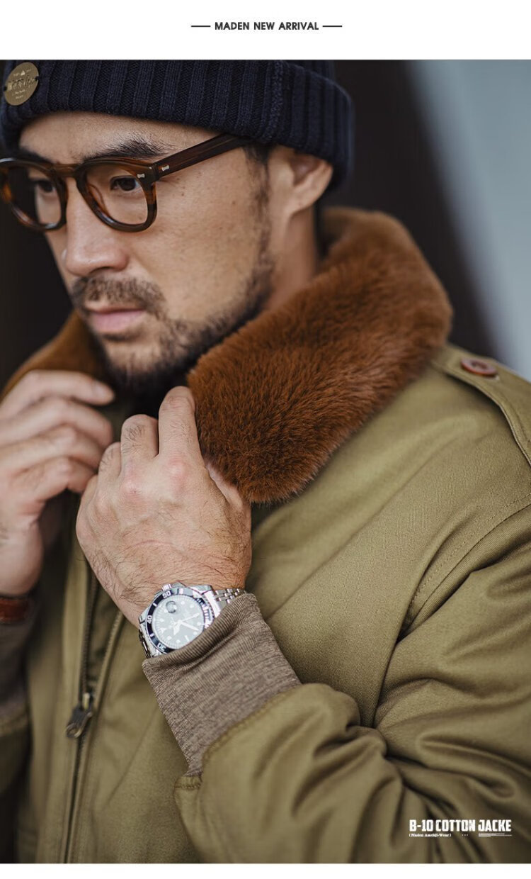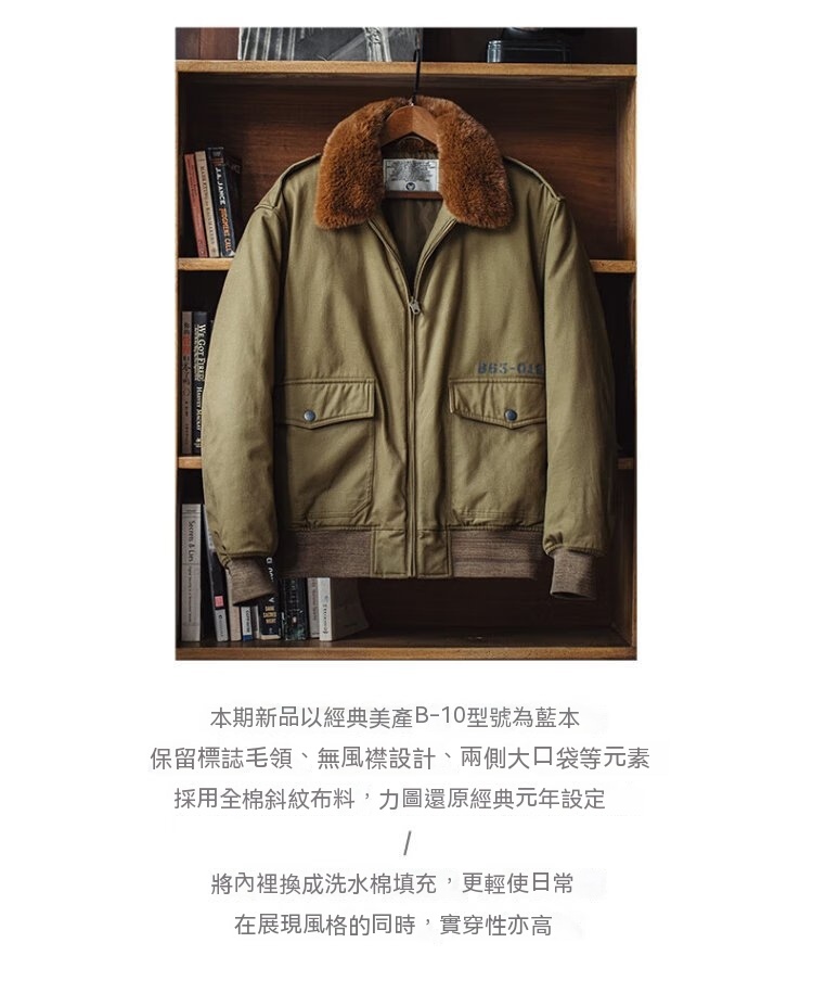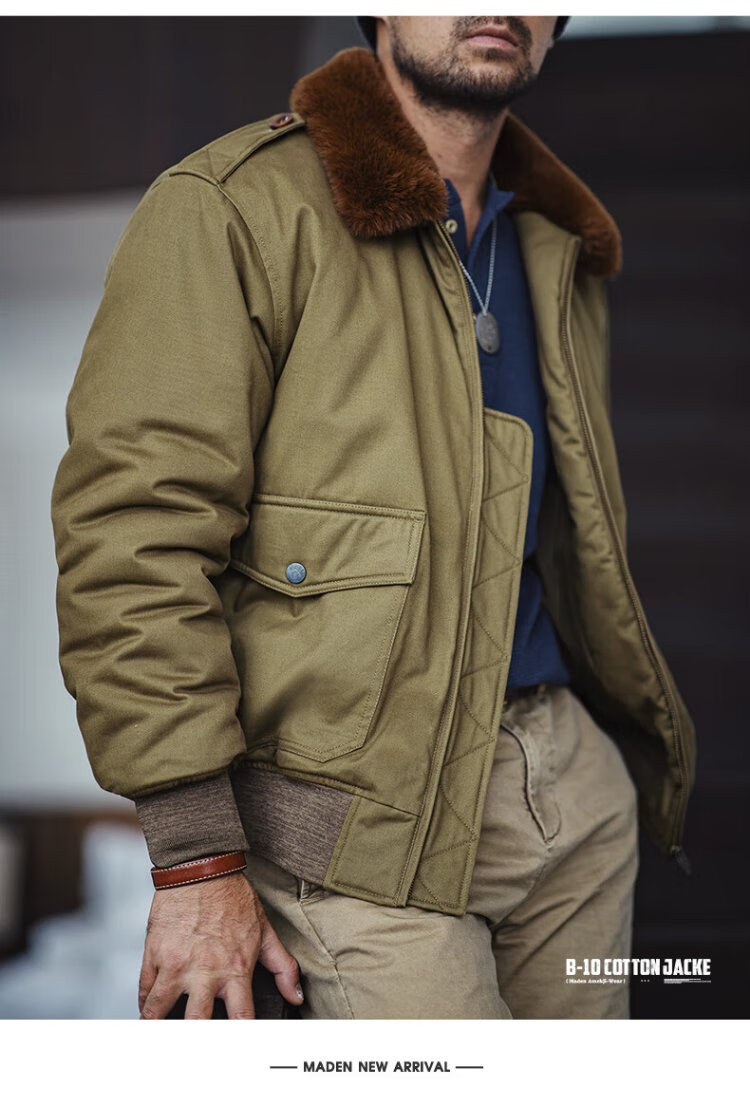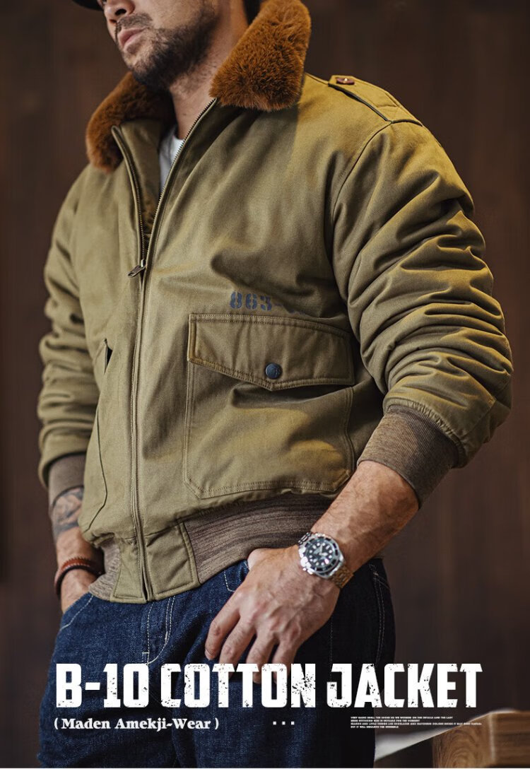 美式復古B10轟炸機夾克棉服毛領翻領棉衣飛行外套男冬季