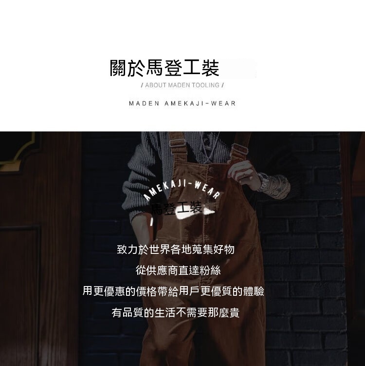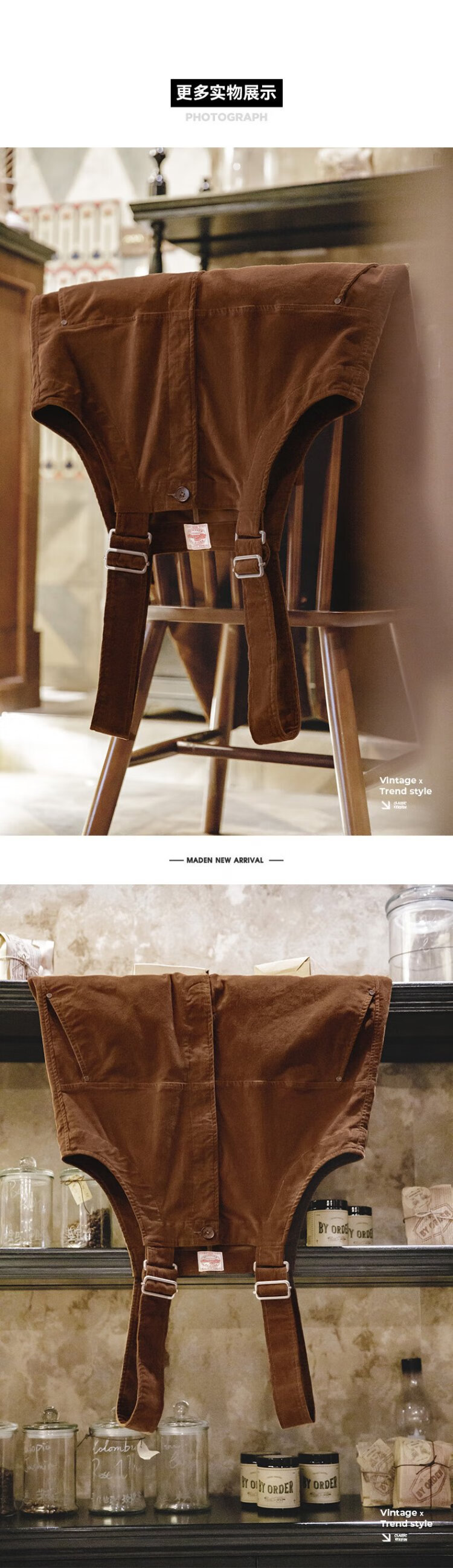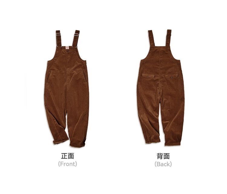 美式燈芯絨背帶褲阿美咔嘰寬鬆直筒吊帶連體褲男秋冬