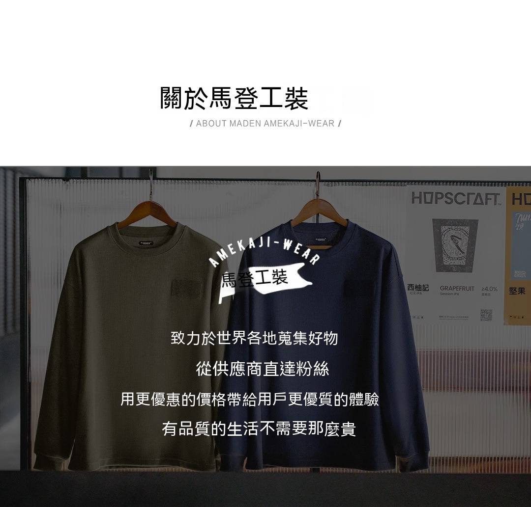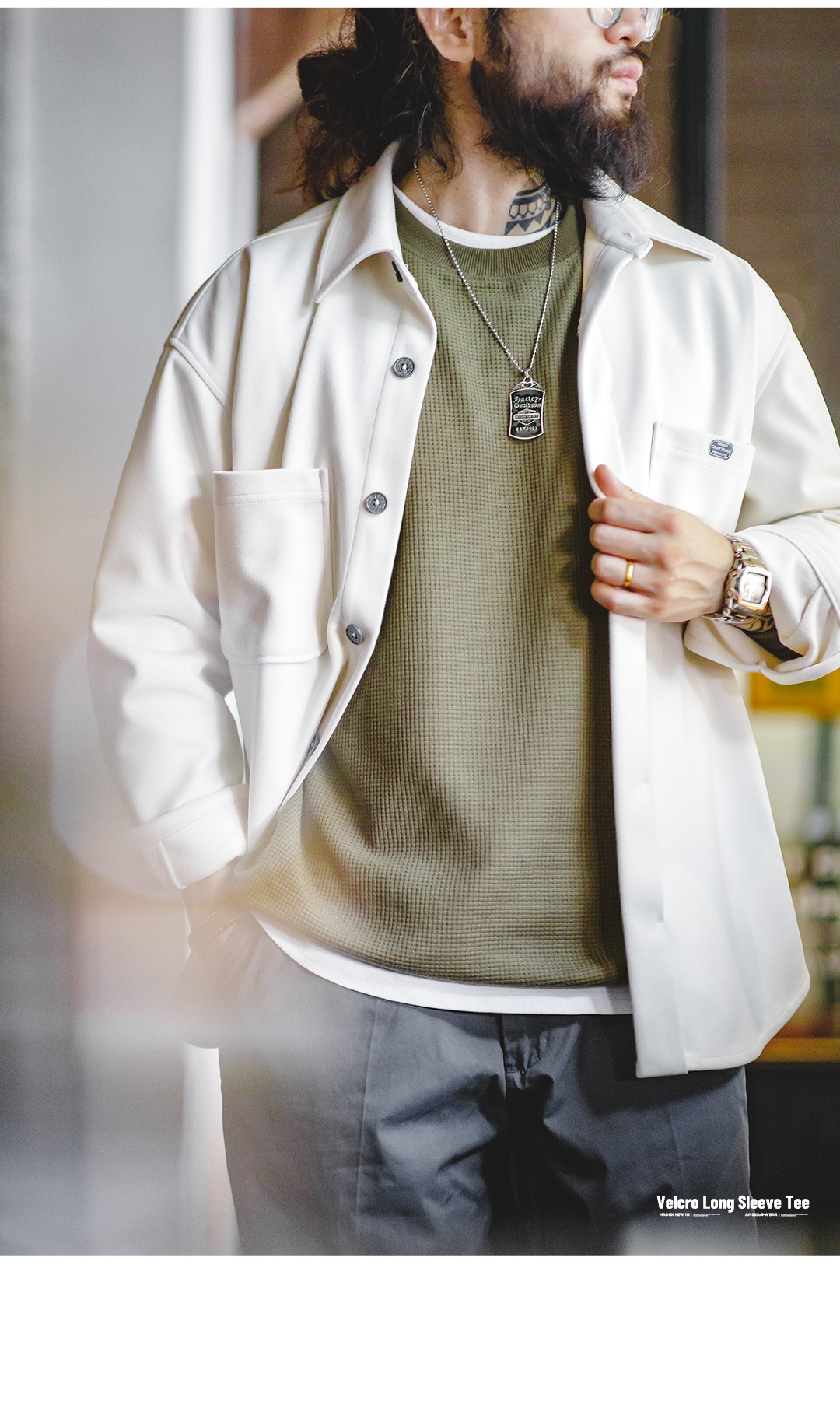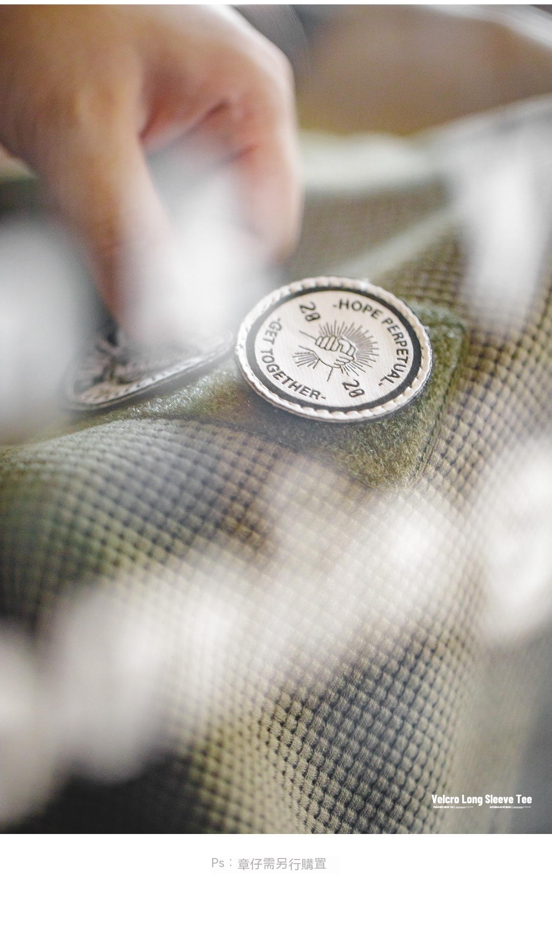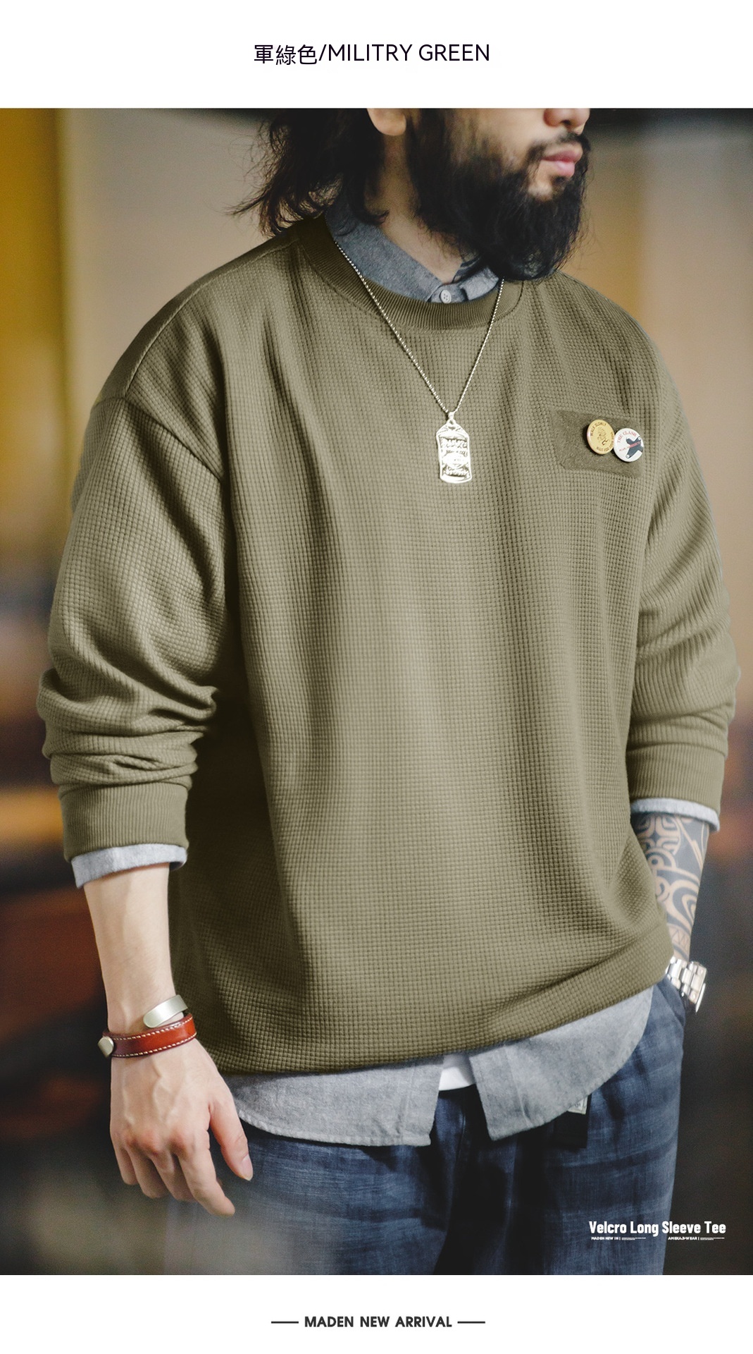 马登工装 美式休闲华夫格长袖T圆领魔术贴叠穿卫衣男秋