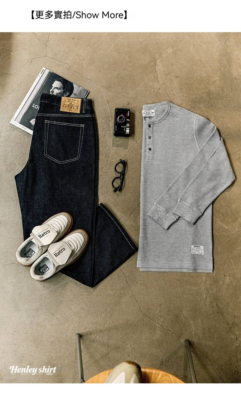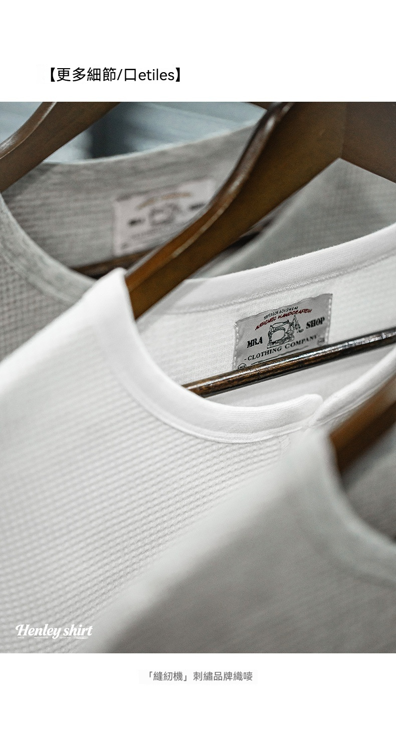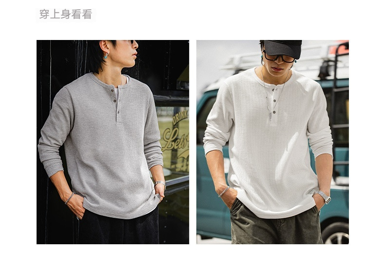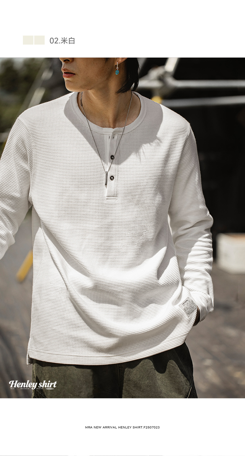 MRA亨利領正肩打底衫300g重磅白色長袖T恤上衣內搭老錢風男秋