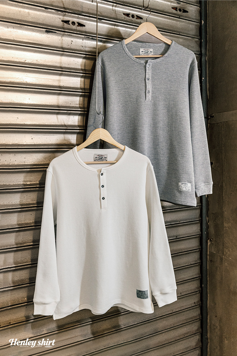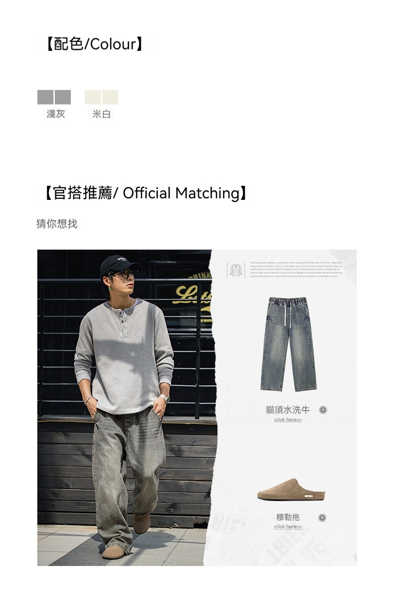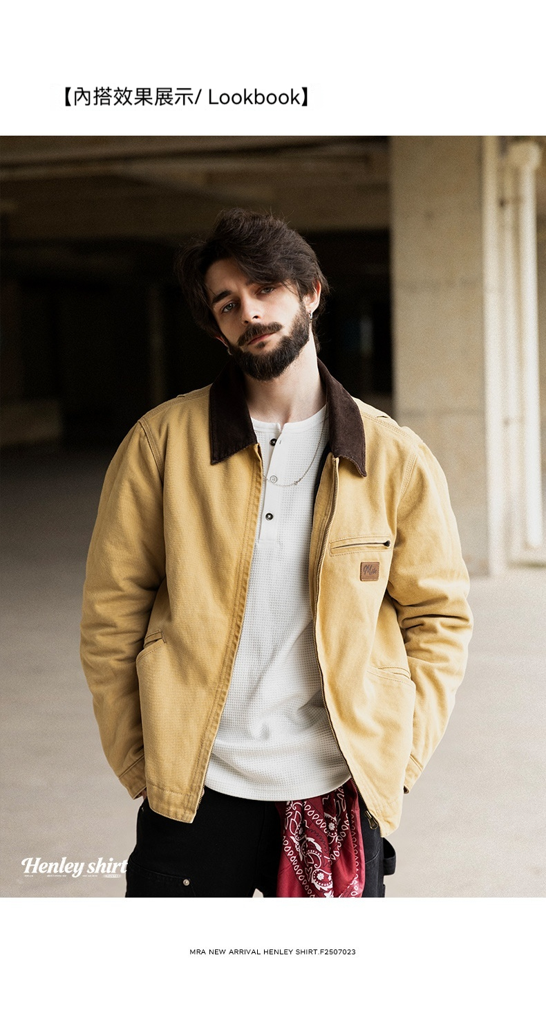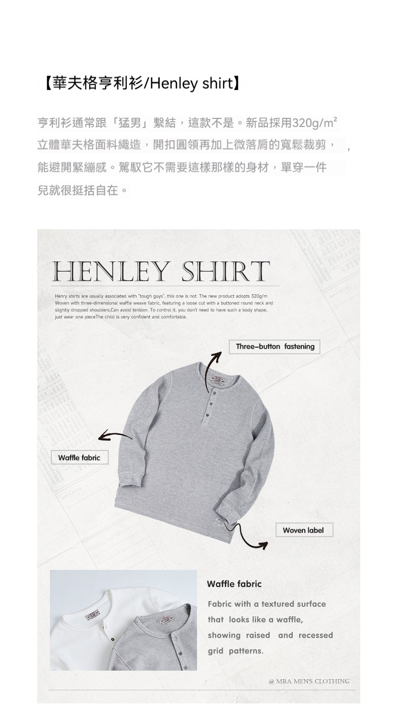 MRA亨利領正肩打底衫300g重磅白色長袖T恤上衣內搭老錢風男秋