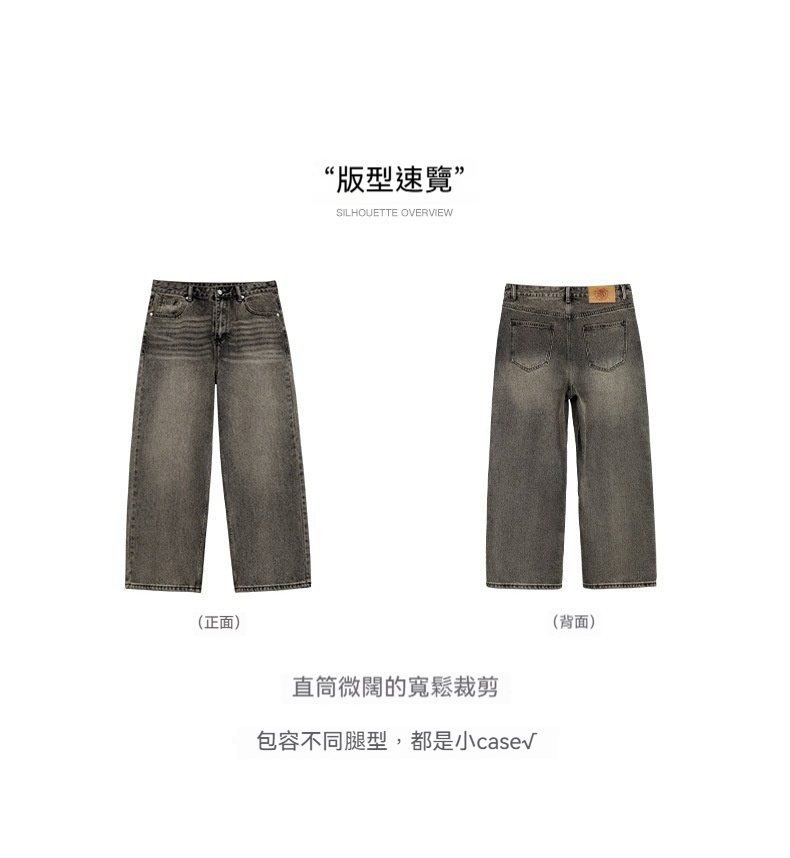 MRA復古水洗丹寧牛仔褲寬鬆直筒闊腿休閒長褲子男士春夏季