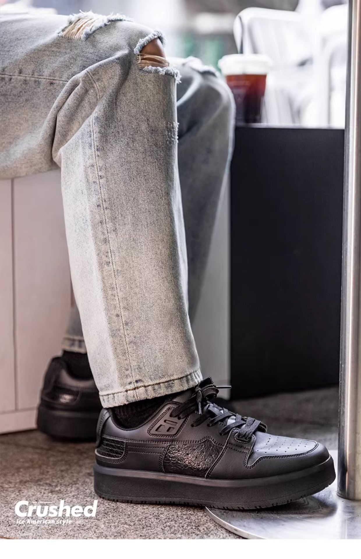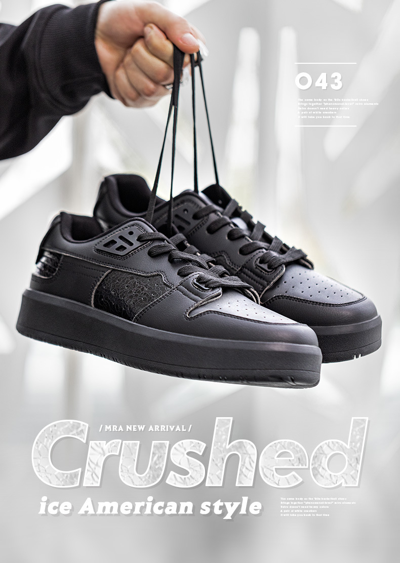 MRA碎冰美式小黑鞋板鞋男鞋2024新款厚底運動休閒鞋裂紋百搭板鞋