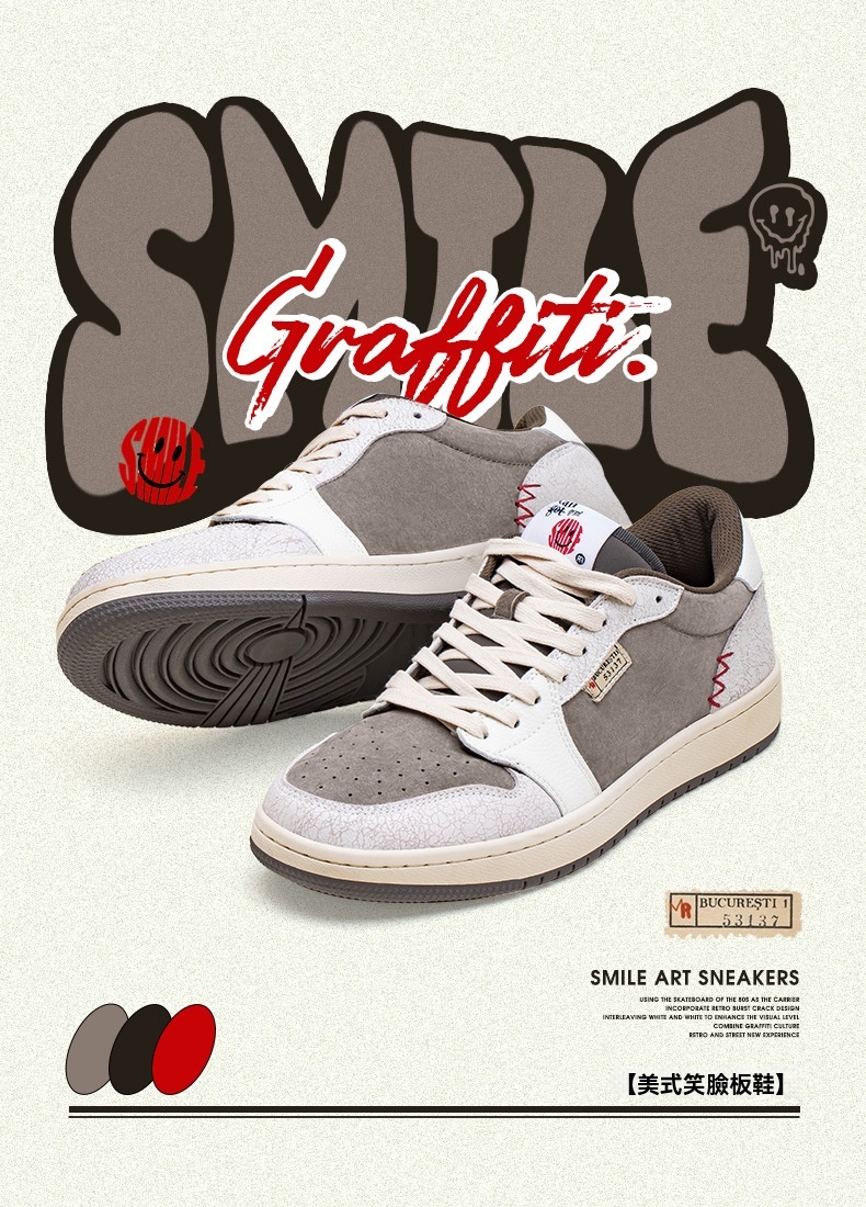 MRA笑臉刺繡板鞋男鞋2024新款小眾設計美式復古百搭運動休閒潮鞋